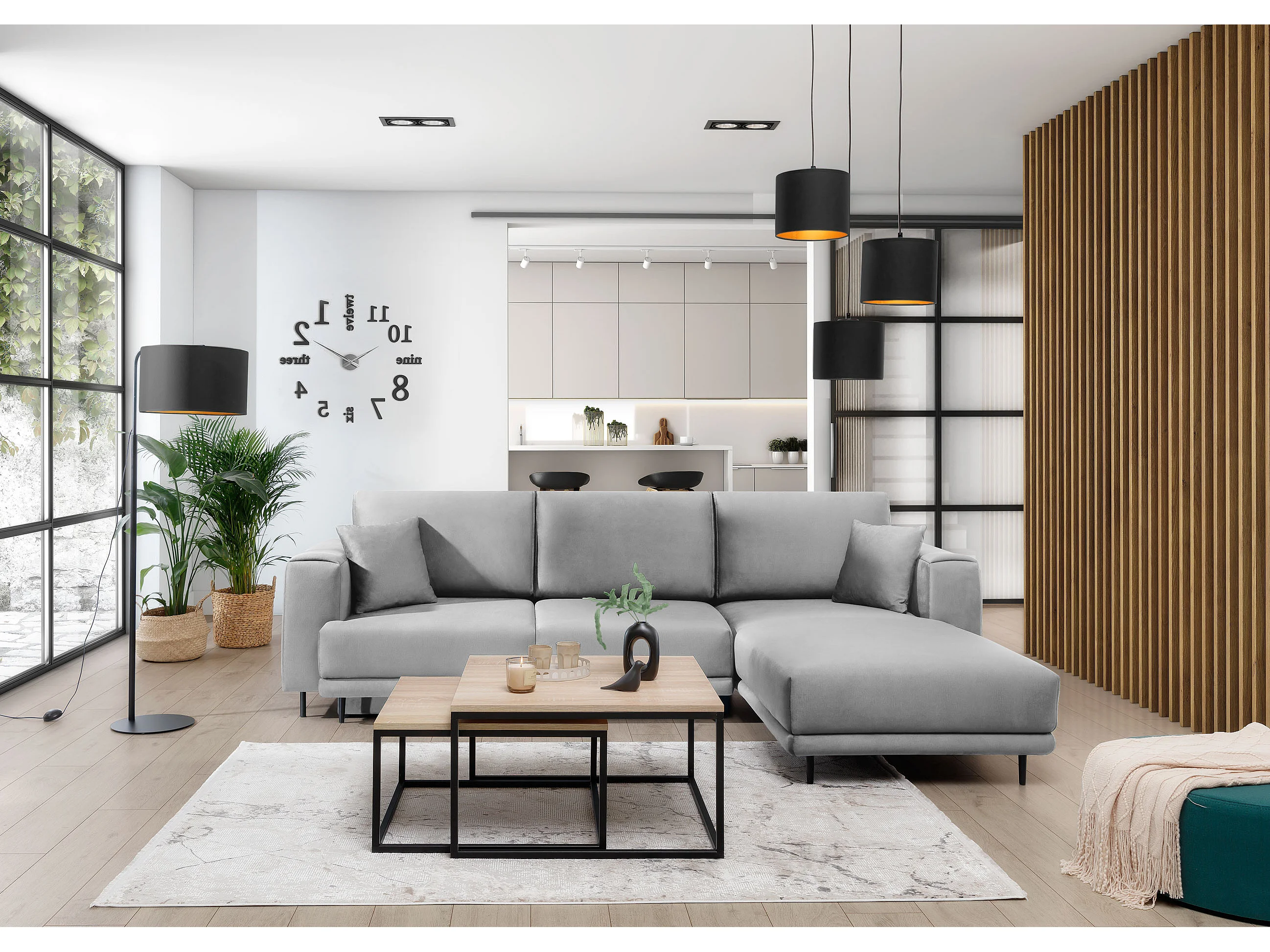 Canapé panoramique convertible LEVANO velours - Rangement et appuie-têtes réglables-Gris/Gris clair-Coffre à droite