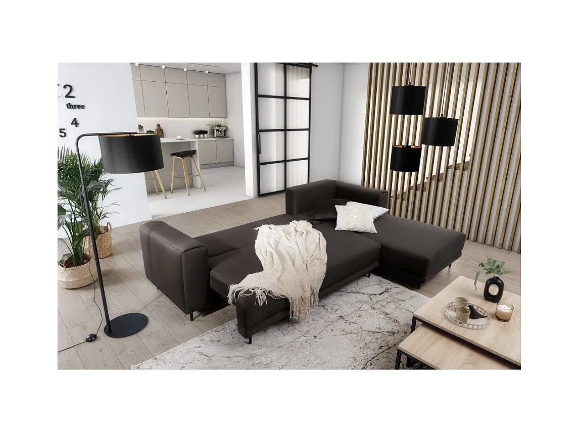 Canapé d'angle convertible velours têtière réglables GRENKY - Coffre, pieds acier chromé-Marron-angle droit