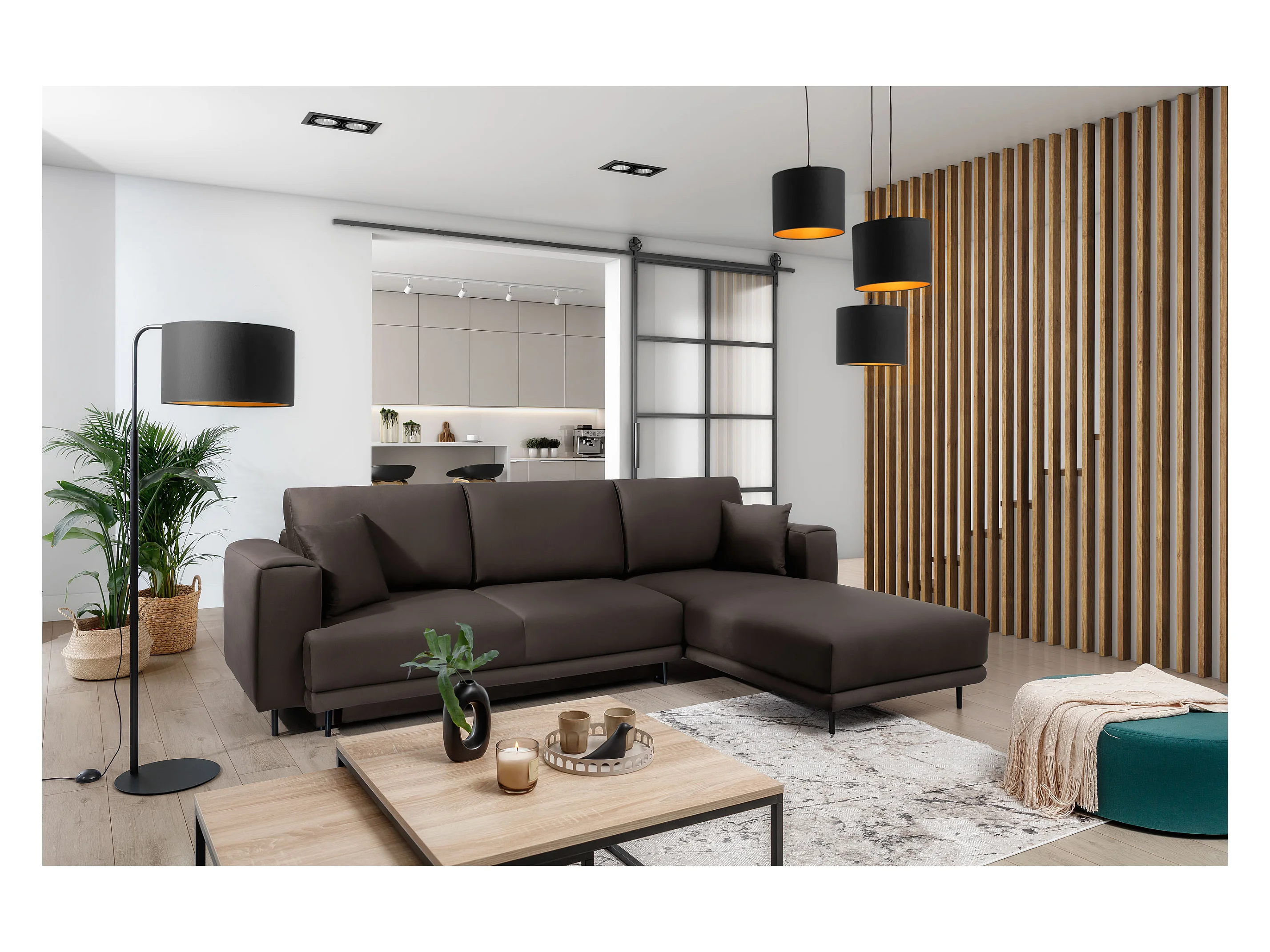 Canapé d'angle convertible velours DAVINA - Coffre et pieds métal noir-Marron-angle droit