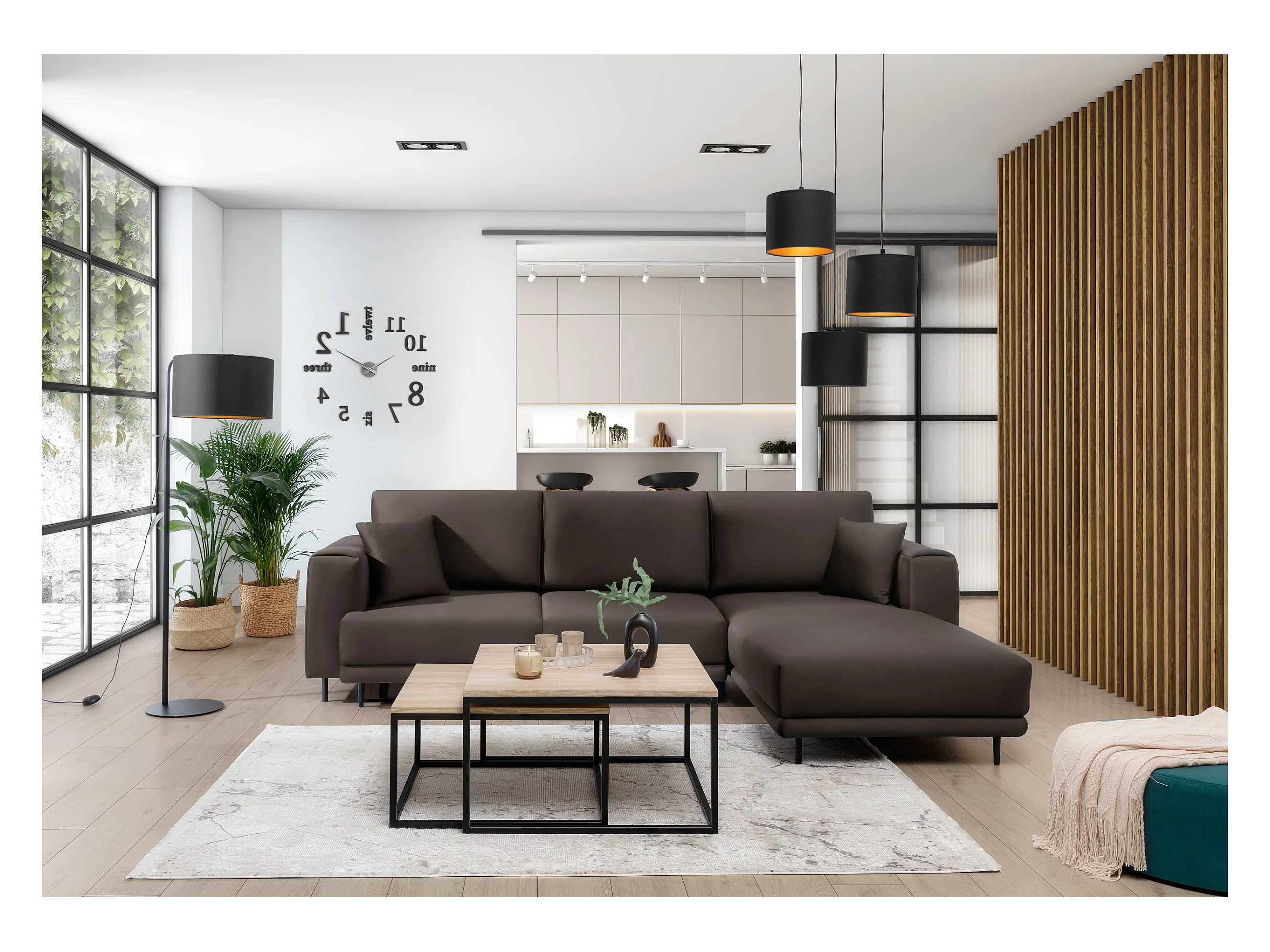 Canapé d'angle réversible et convertible velours Neo - Pieds acier chromé-Marron foncé