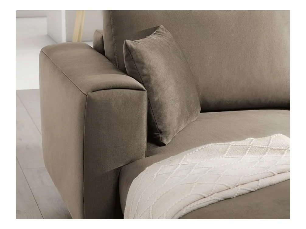 Canapé d'angle convertible velours têtière réglables GRENKY - Coffre, pieds acier chromé-Marron clair-angle droit