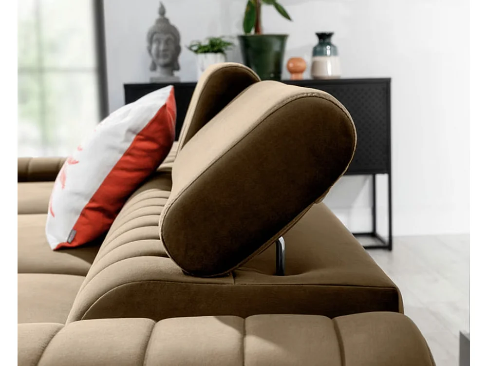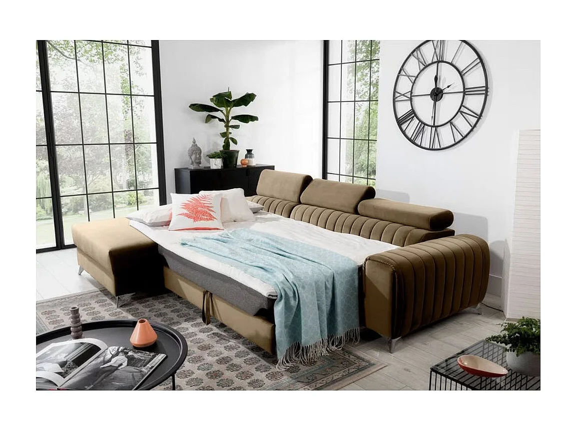 Canapé d'angle convertible velours têtière réglables GRENKY - Coffre, pieds acier chromé-Marron clair-angle droit