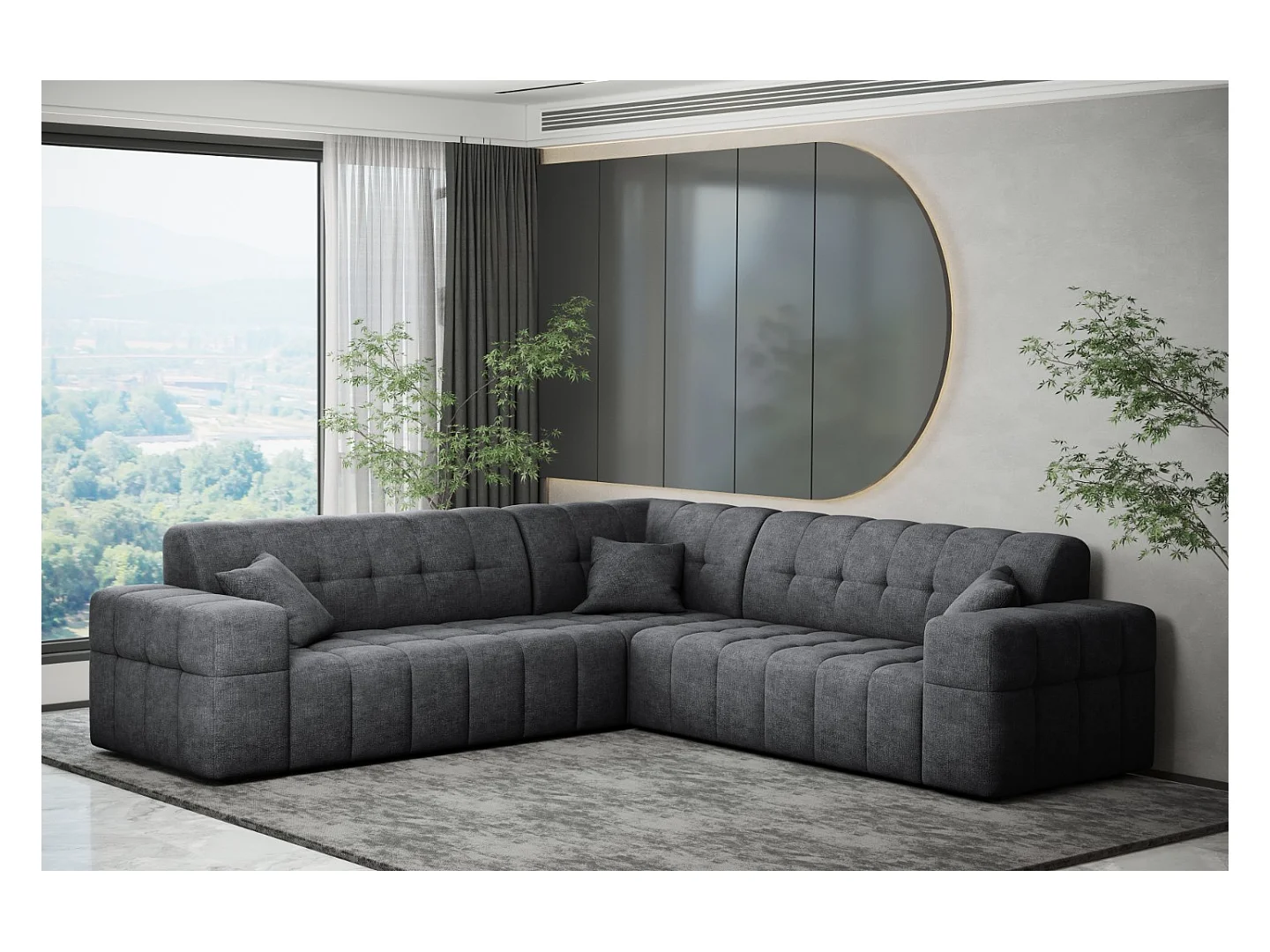 Canapé d'angle Corner Eckouch Salon NIMES tissu élégant Harmonie Parfaite Gris Foncé