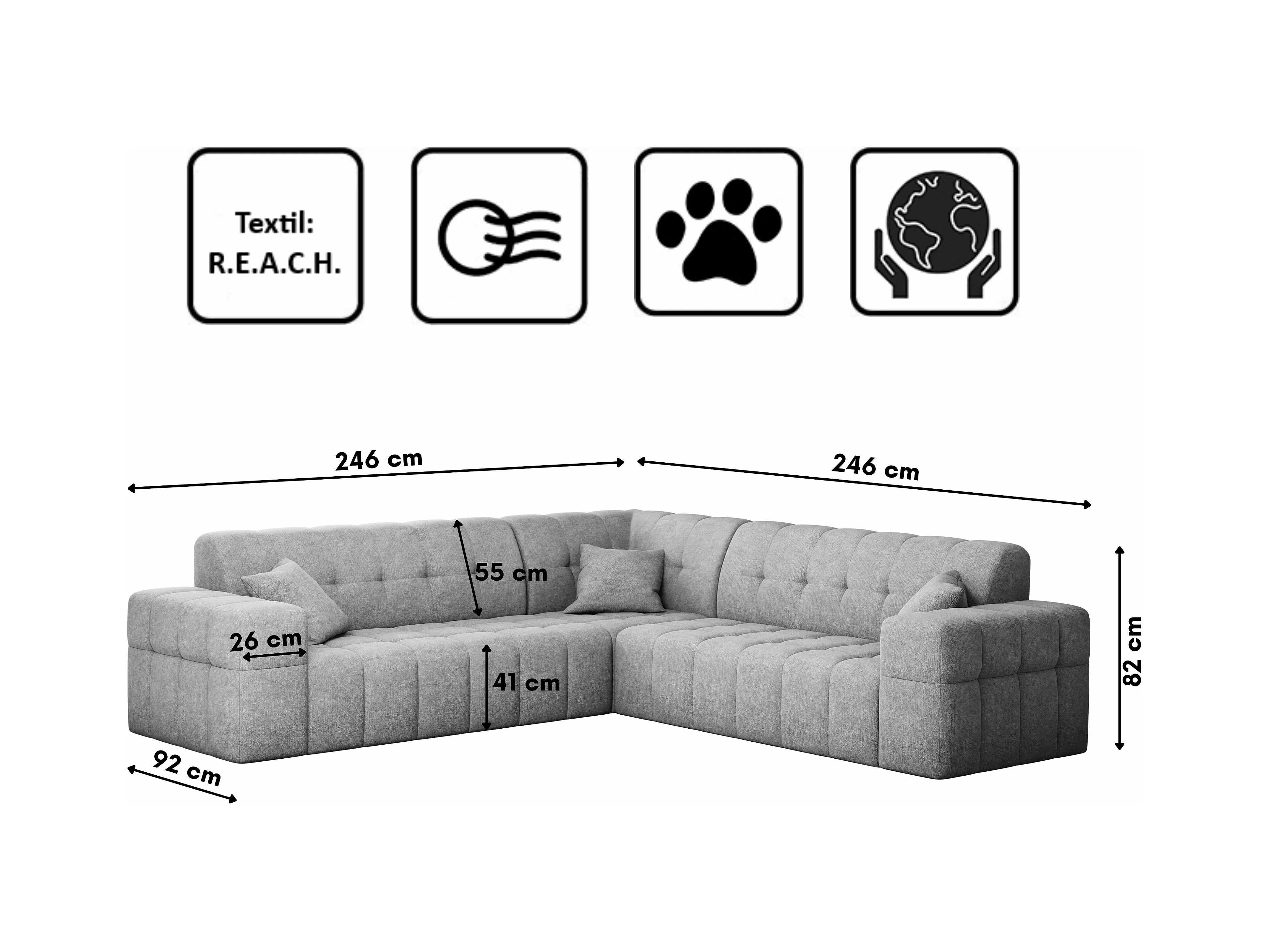 Canapé d'angle PULA, tissu Perfect Harmony, gris
