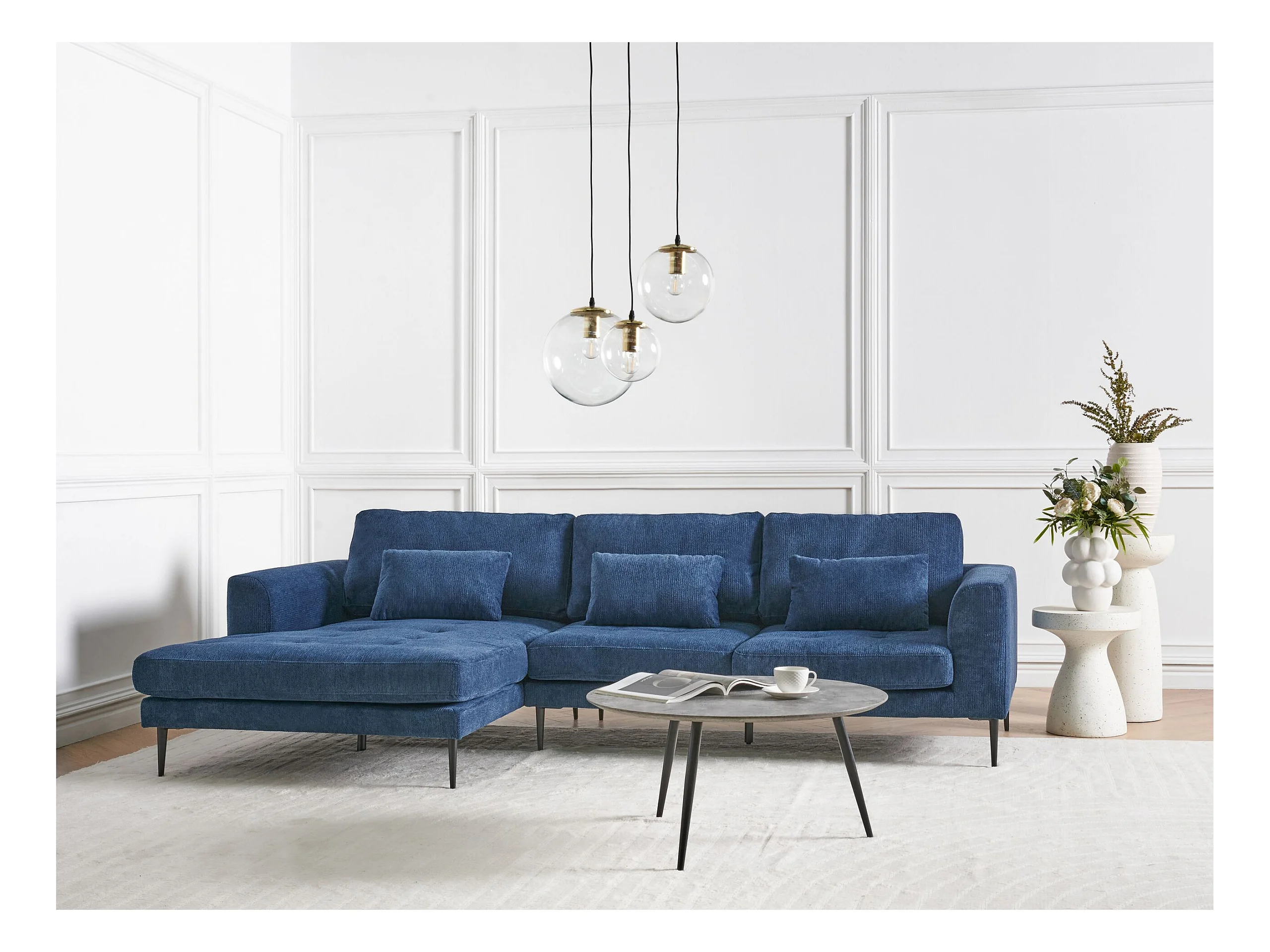 Cosmopolitan Design - Canapé d'angle gauche "Arendal" 3 places en chenille bleu roi - 224x166x70cm