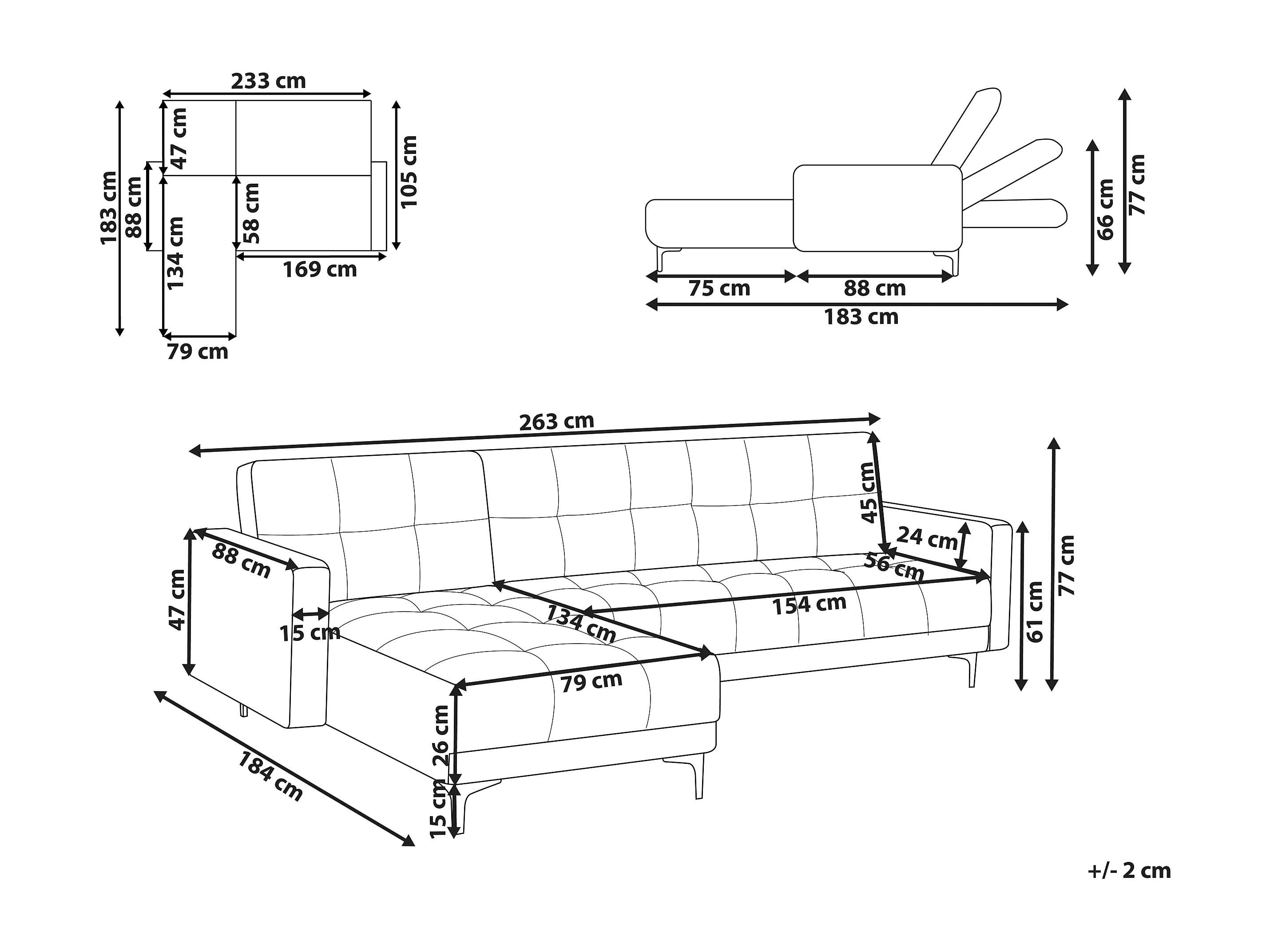 Canapé-lit d'angle modulable 4 places ALNES Tissu Beige Côté droit