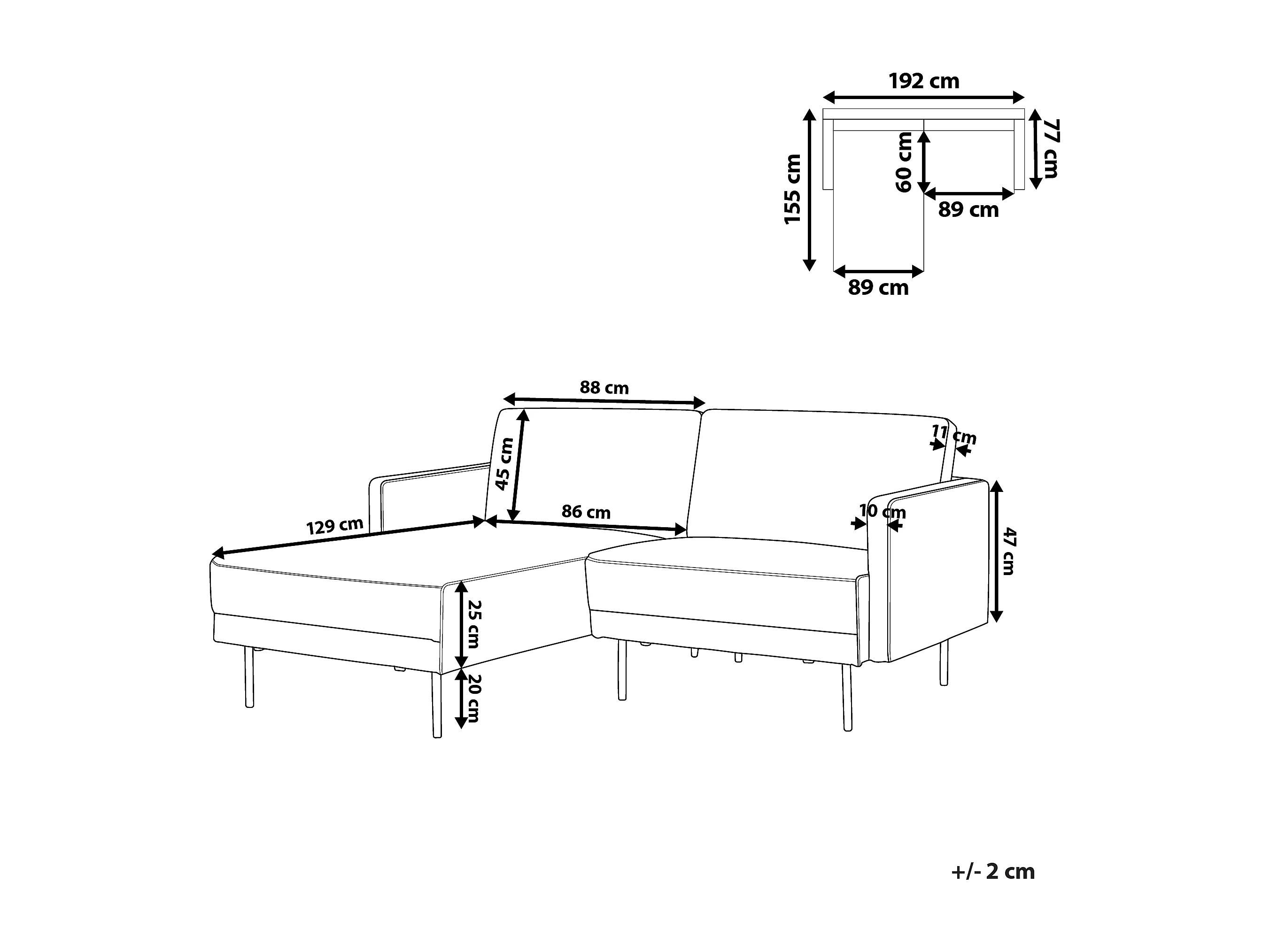 Canapé d'angle 2 places BREDA Tissu Noir Côté droit