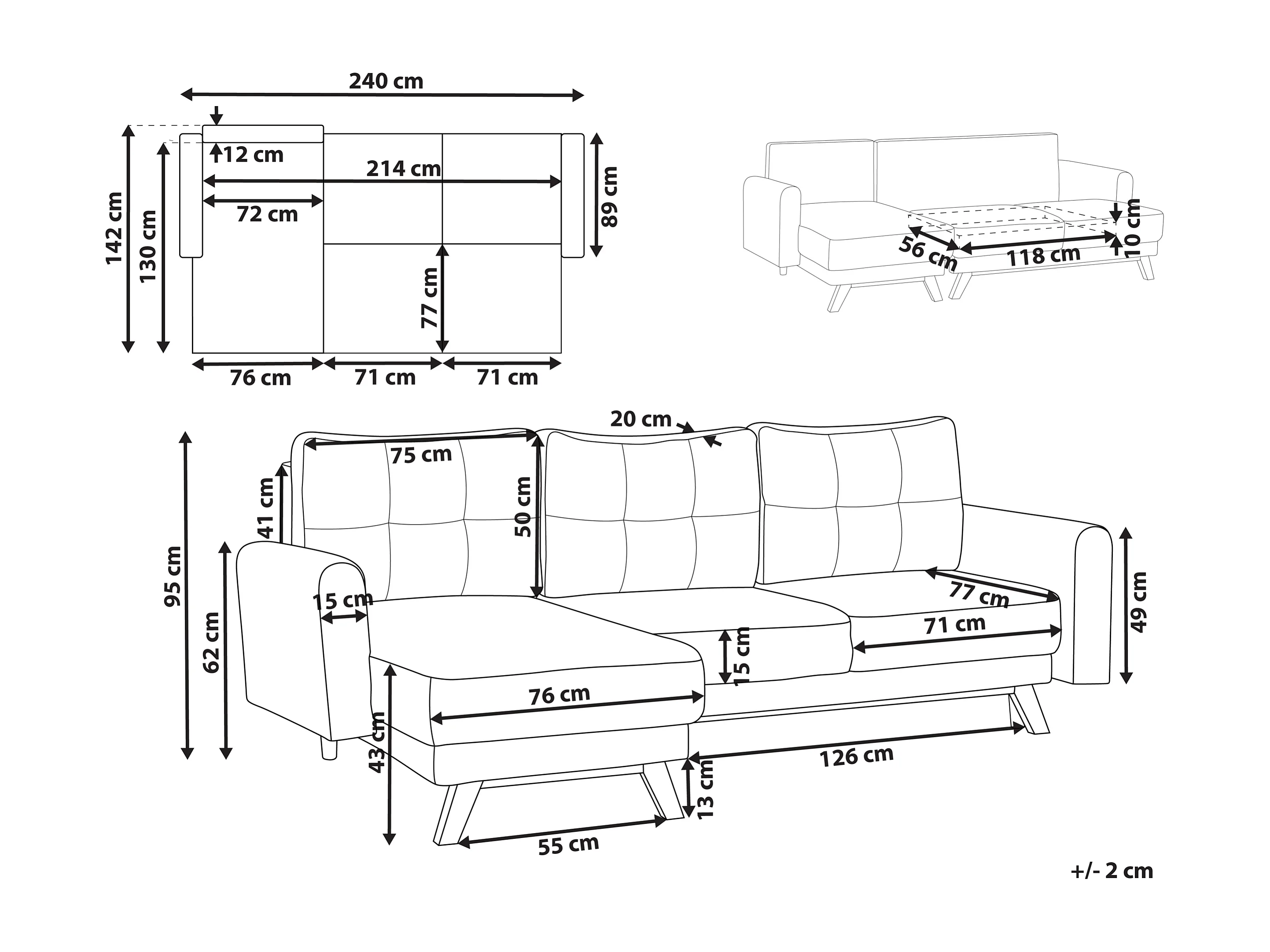 Canapé d'Angle à Droite 3 Places Convertible Dossier Rembourré en Tissu Polyester Beige Siro
