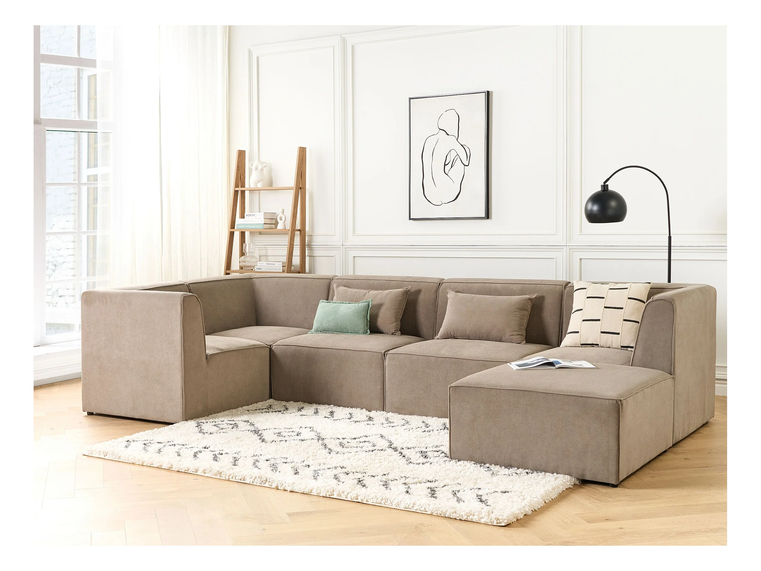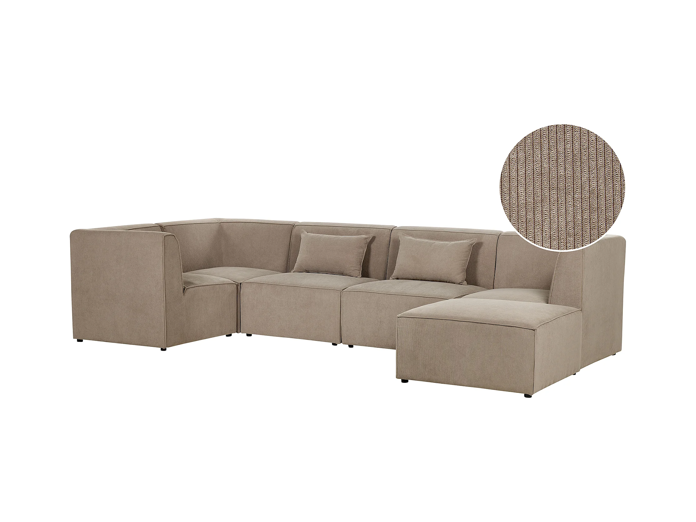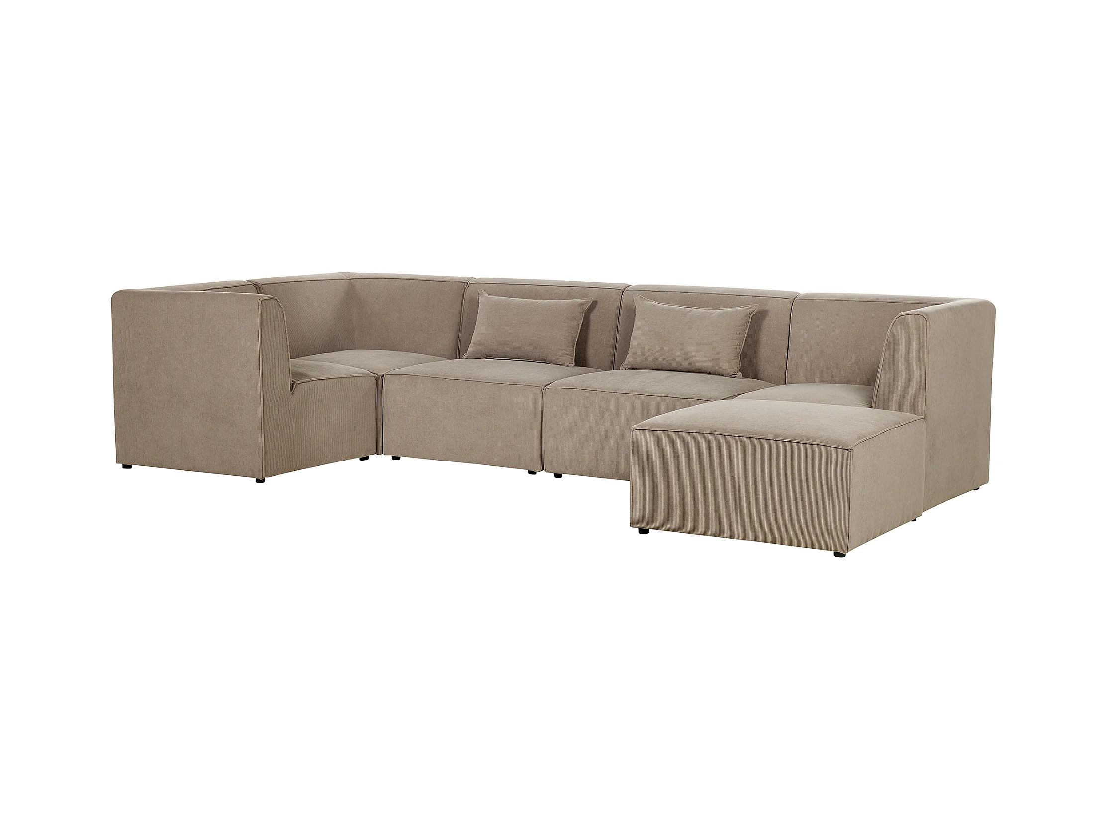 Canapé d'angle modulable 5 places LEMVIG Velours côtelé Taupe avec ottoman Côté droit