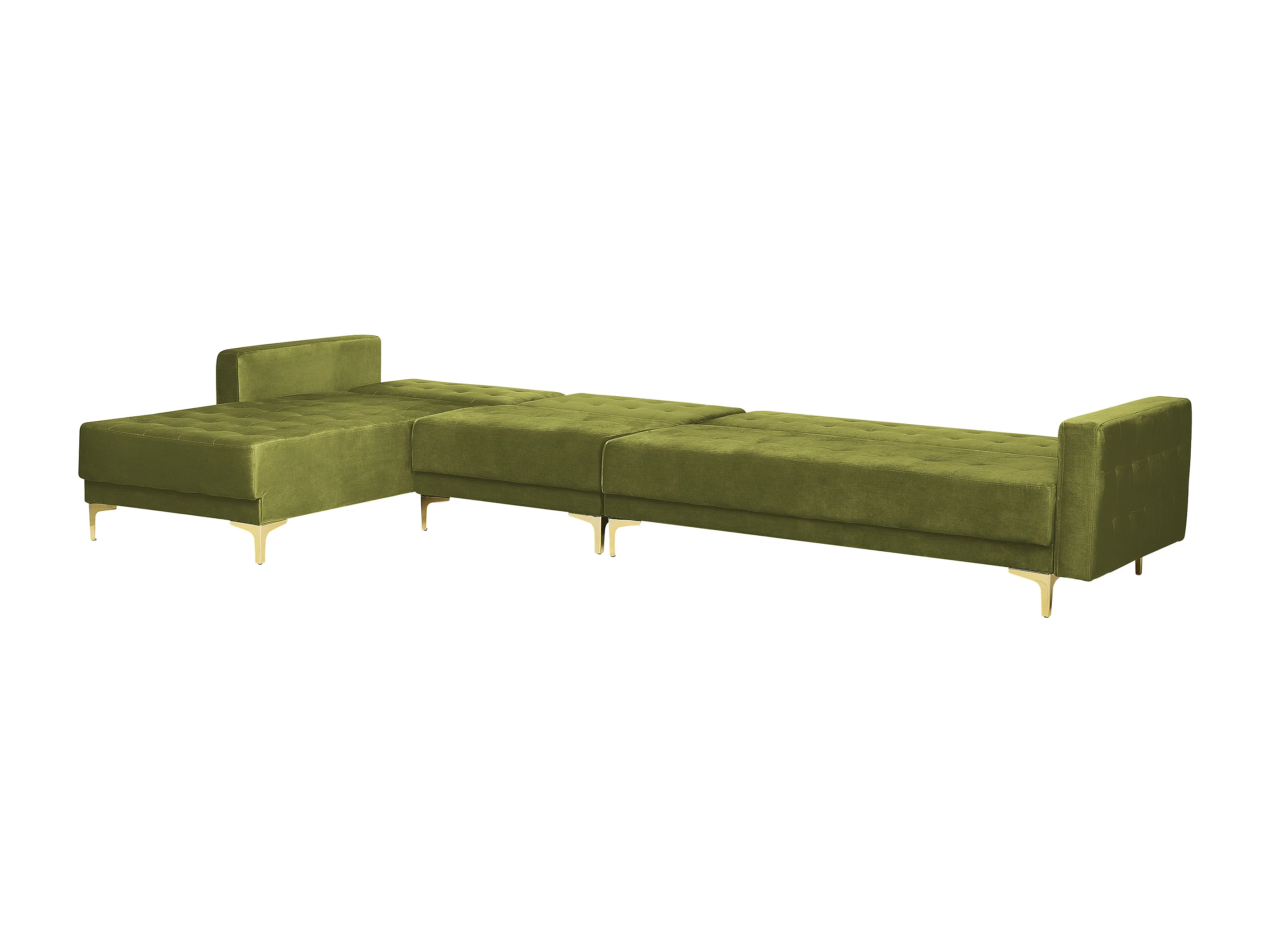 Canapé-lit d'angle modulable 5 places ABERDEEN Velours Vert avec ottoman Côté droit
