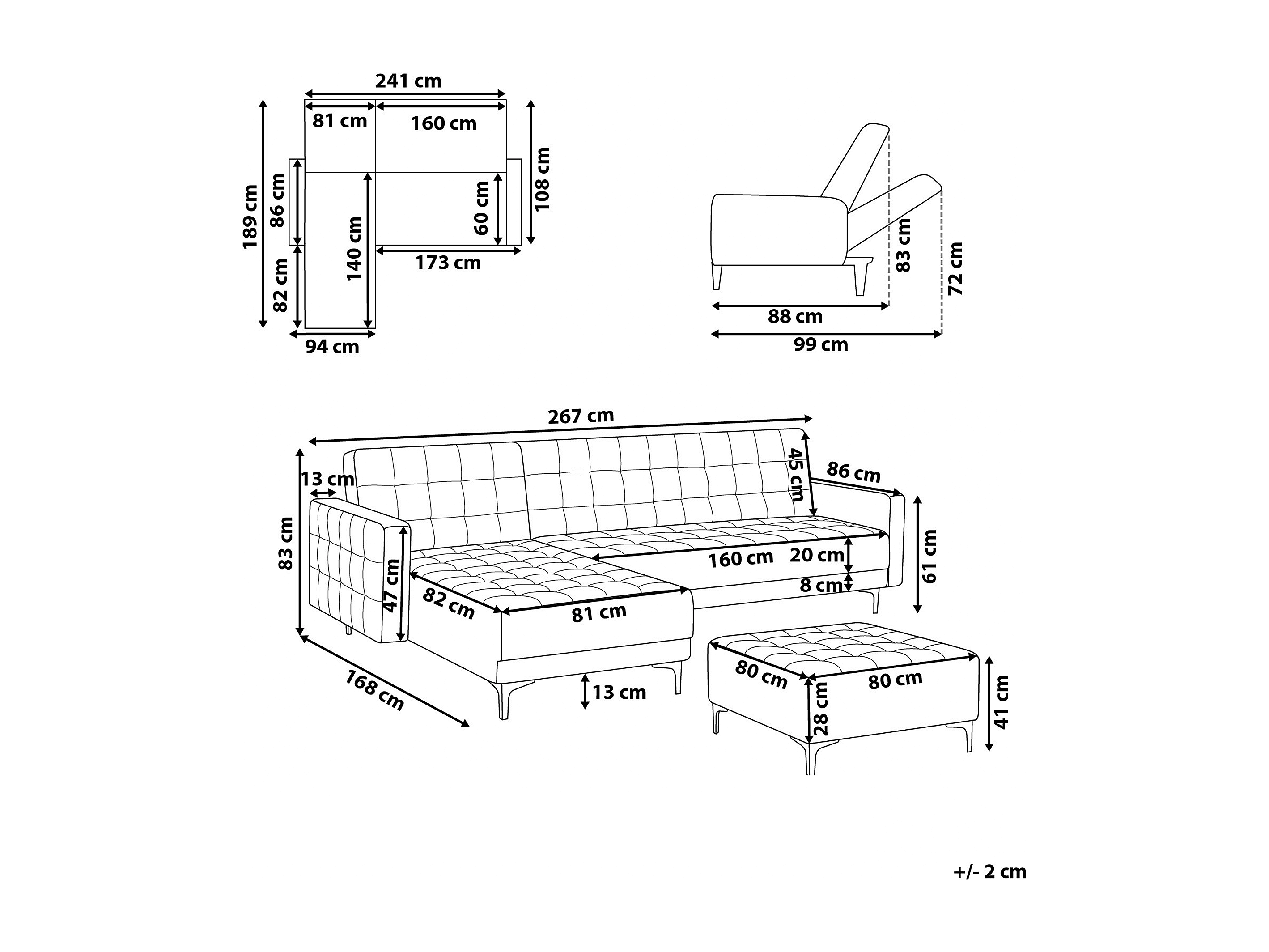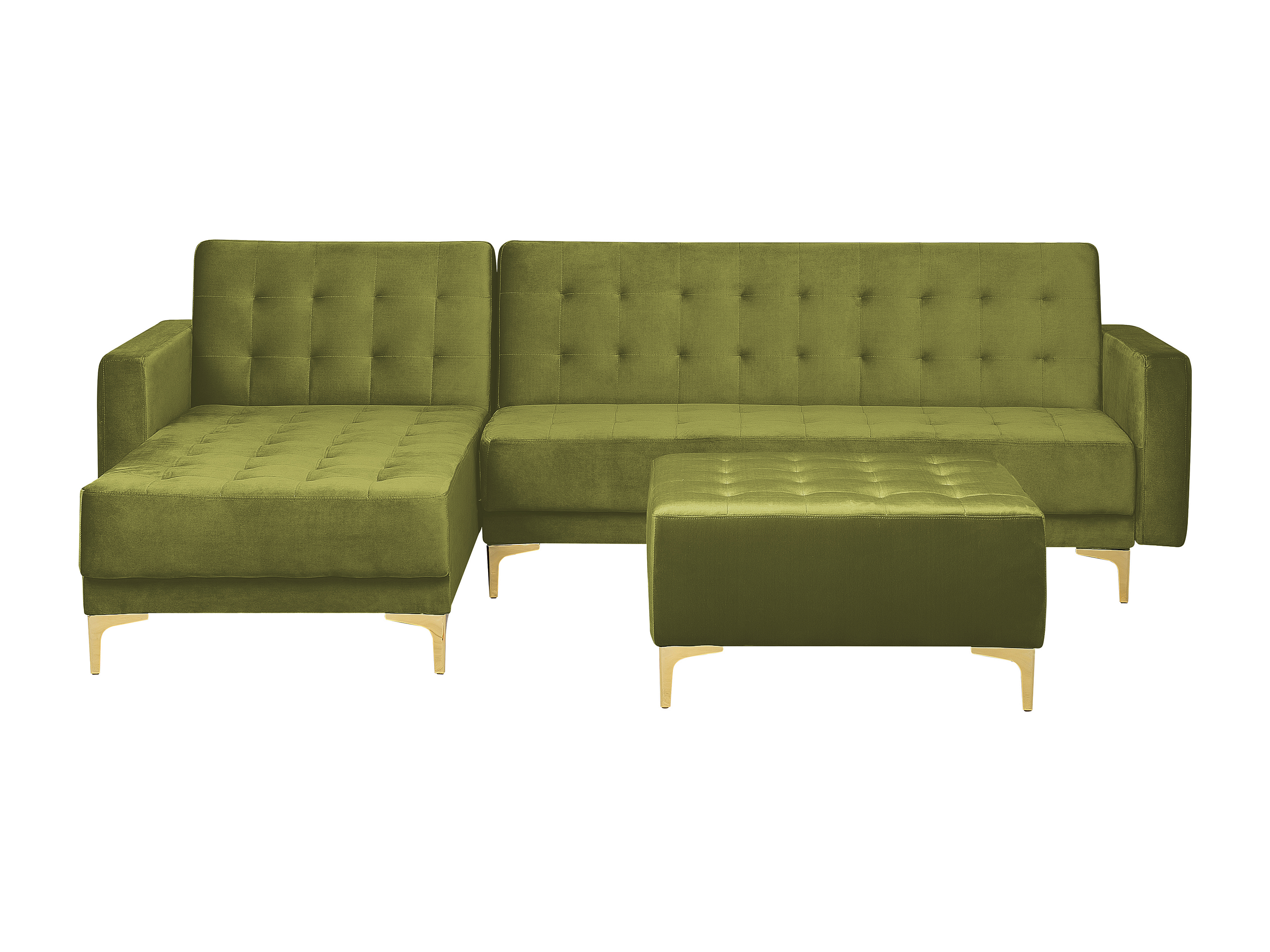 Canapé-lit d'angle modulable 4 places ABERDEEN Velours Vert avec ottoman Côté droit