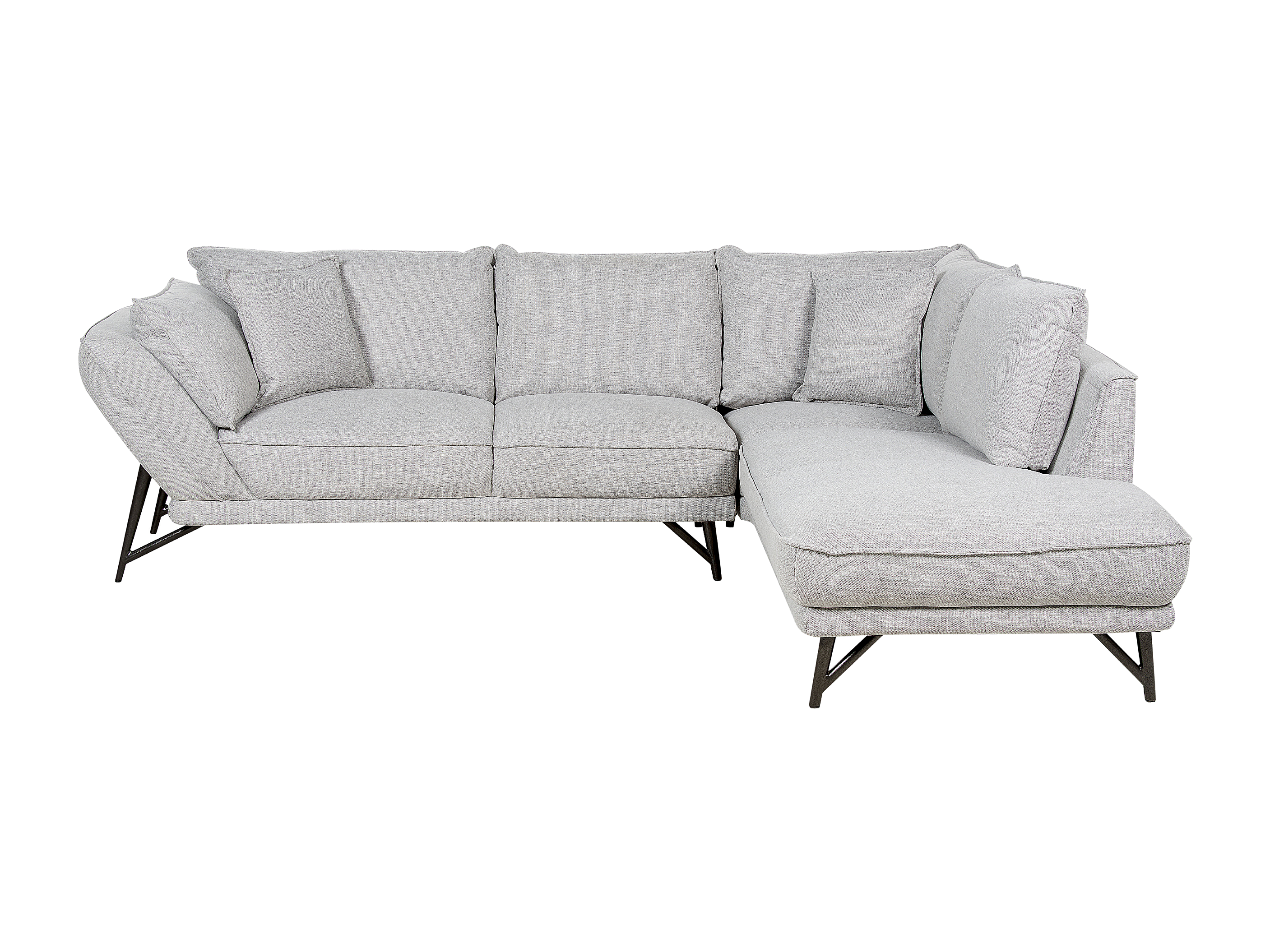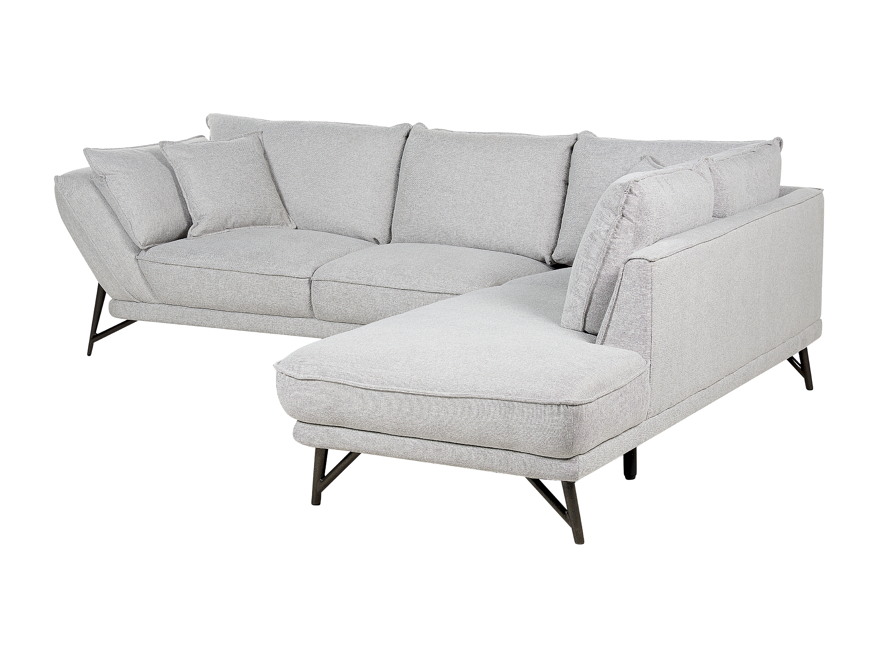 Canapé d'Angle Côté droite en Lin Gris Clair 3 Places Rembourré Pieds Métal Elga