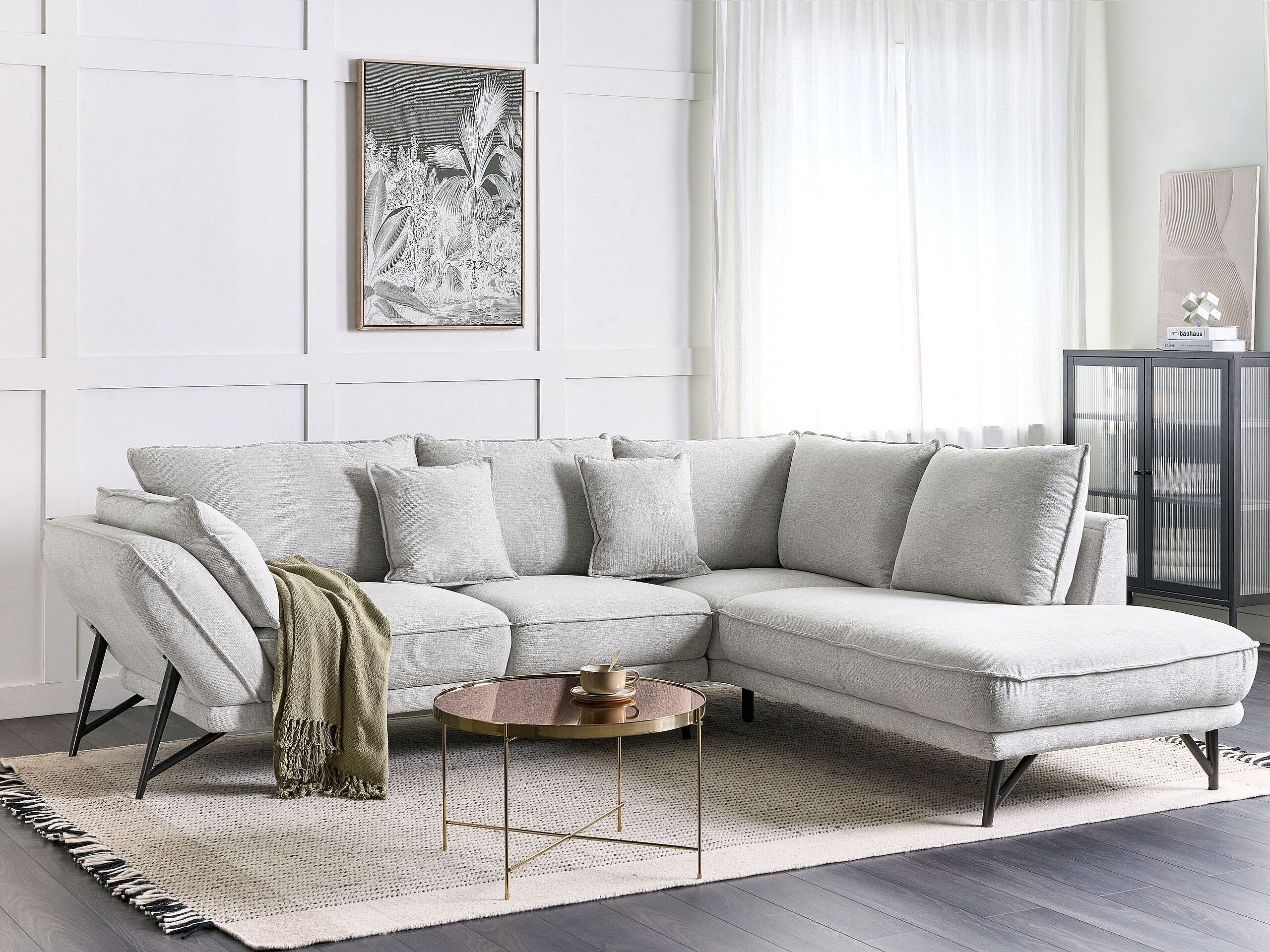 Canapé d'angle en velours gris clair FLAM