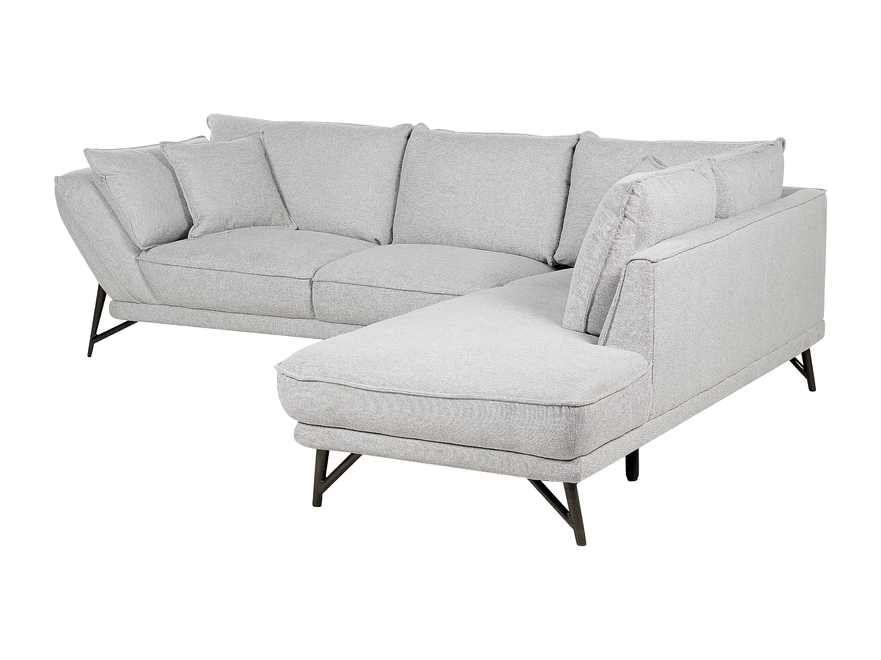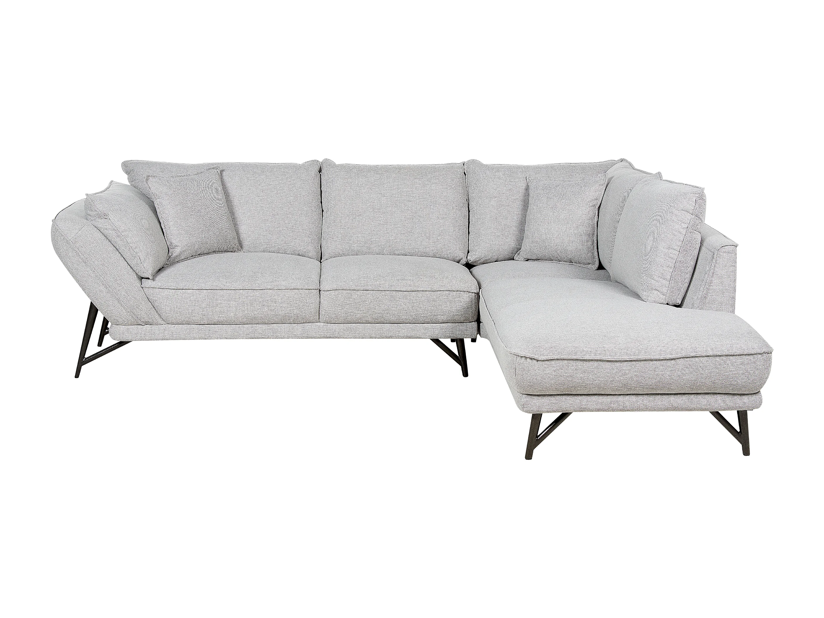 Canapé d\'Angle Côté droite en Lin Gris Clair 3 Places Rembourré Pieds Métal Elga