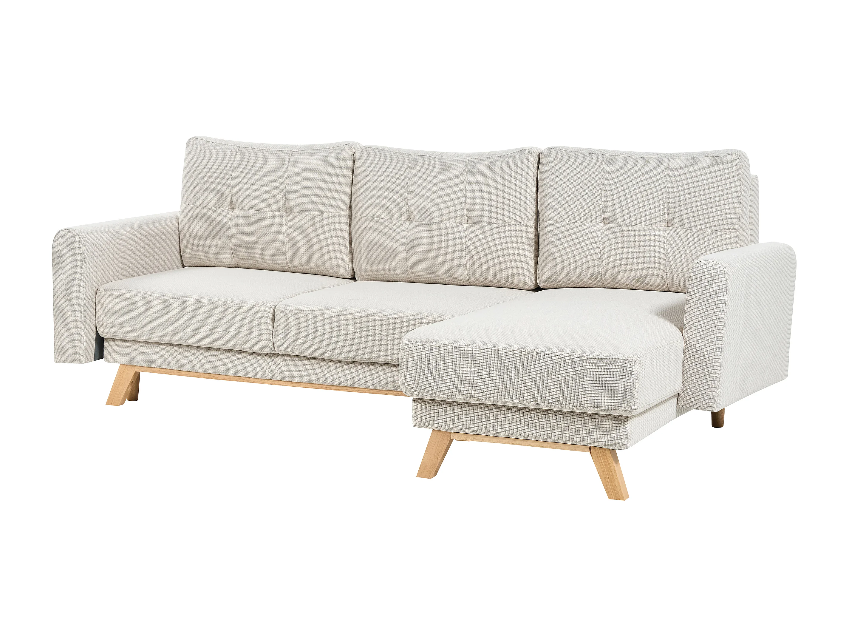 Canapé d'Angle à Gauche 3 Places Convertible Dossier Rembourré en Tissu Polyester Beige Siro
