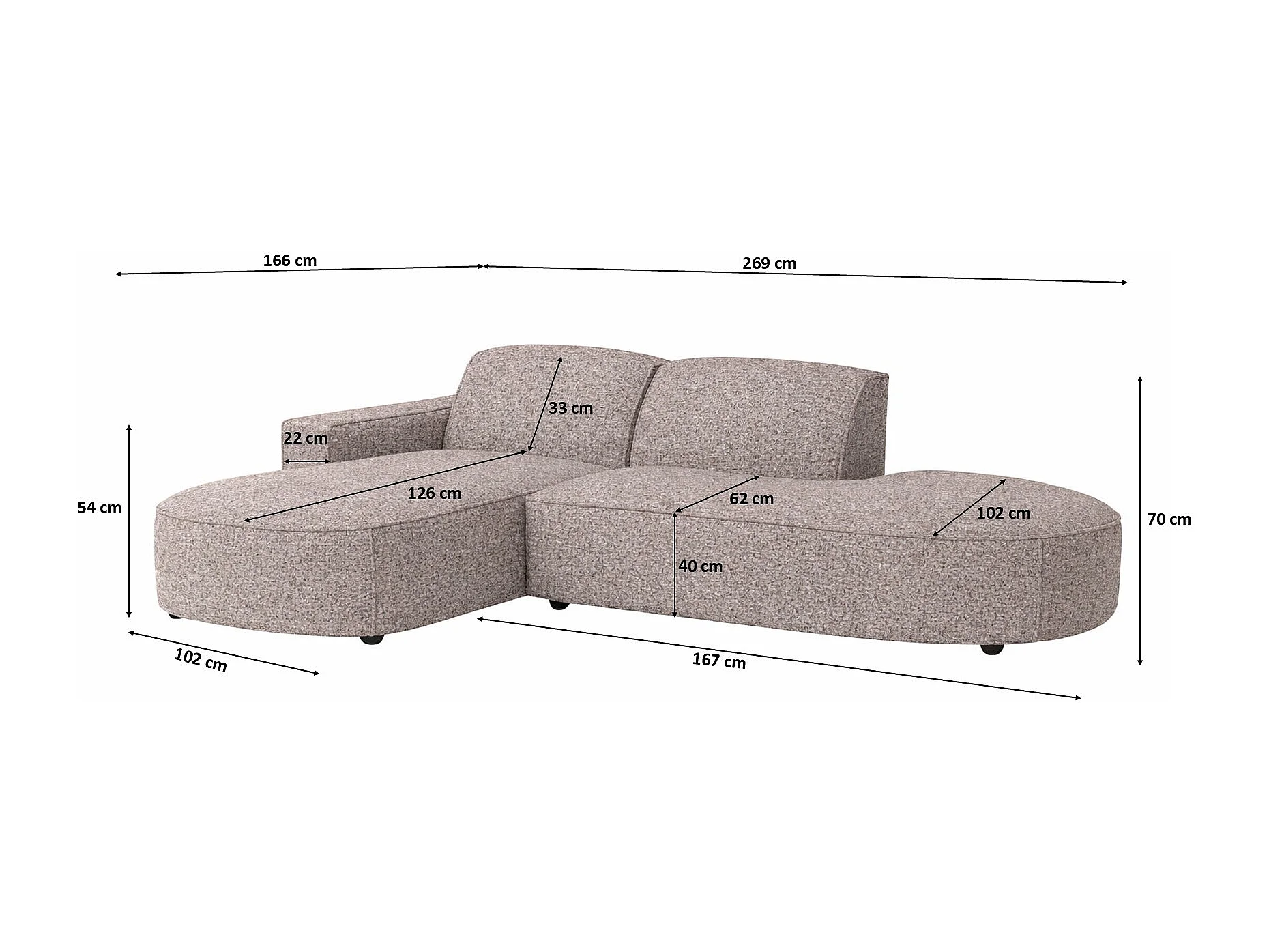 Canapé d'angle Cursal Atelier, tissu Artico, beige, gauche