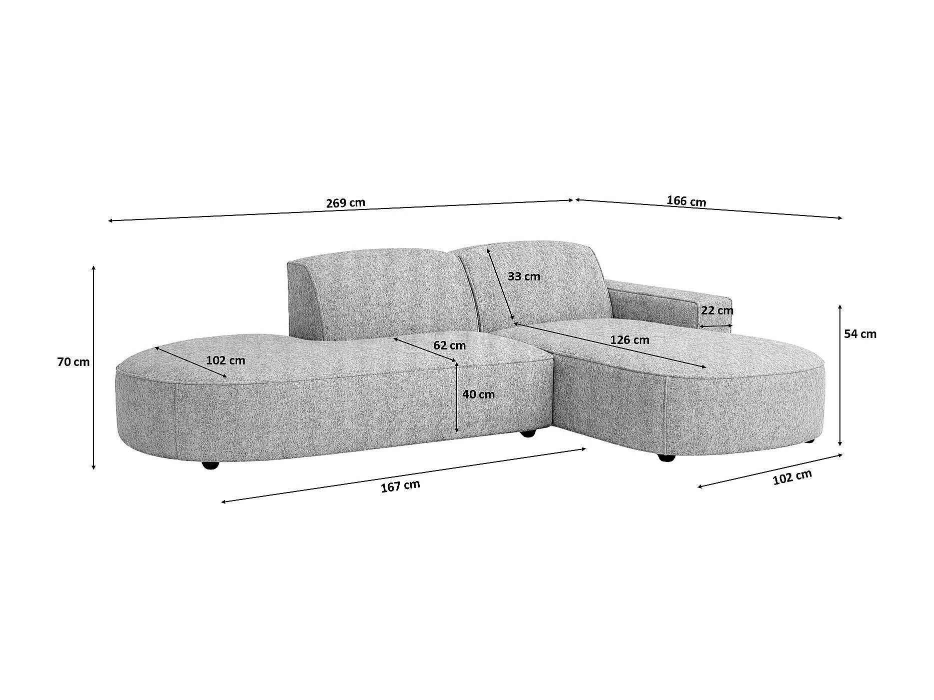 Canapé d'angle Cursal Atelier, tissu Artico, ciment, droit