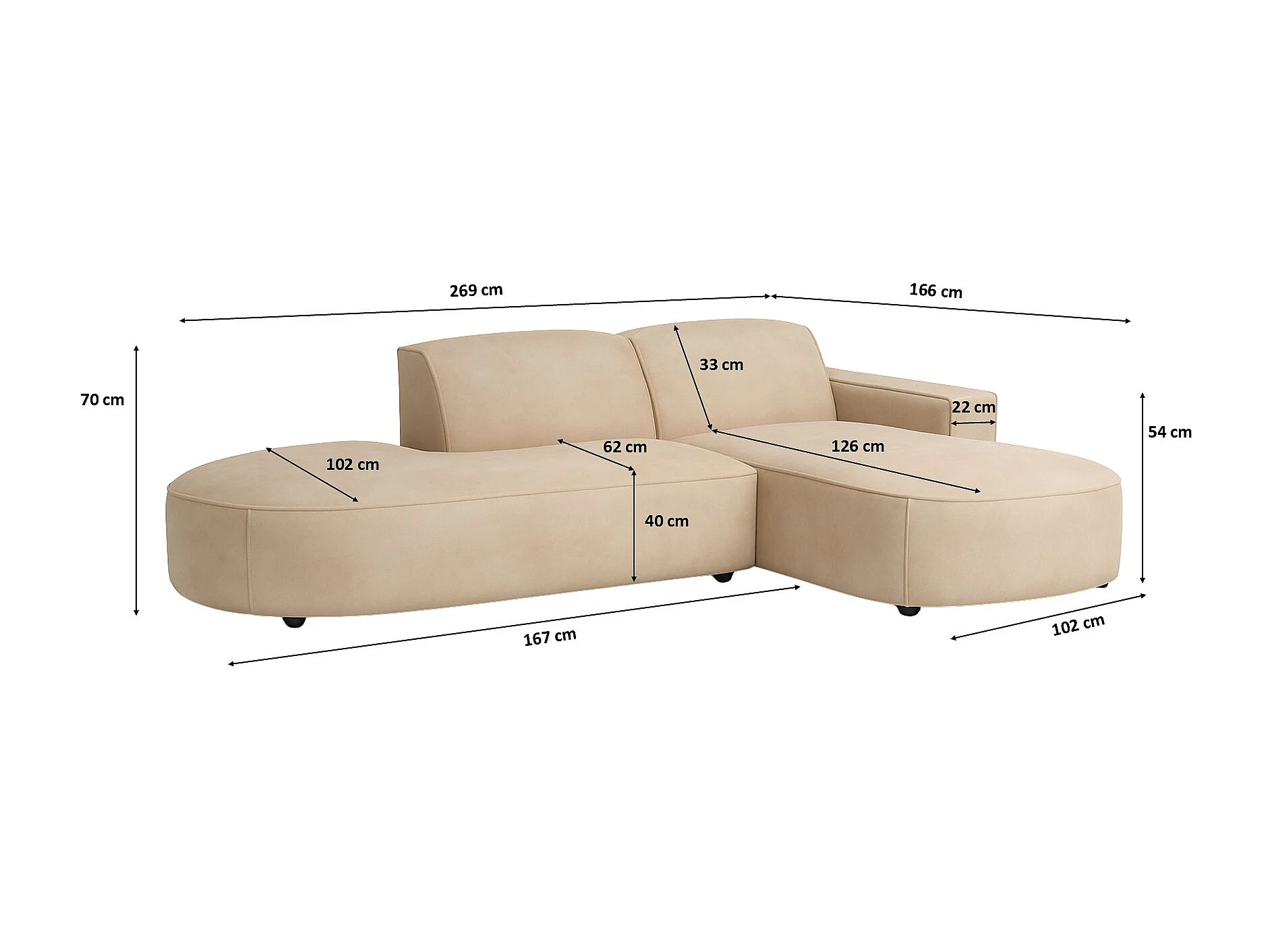 Canapé d'angle Cursal Atelier, tissu Salvador, beige, droit