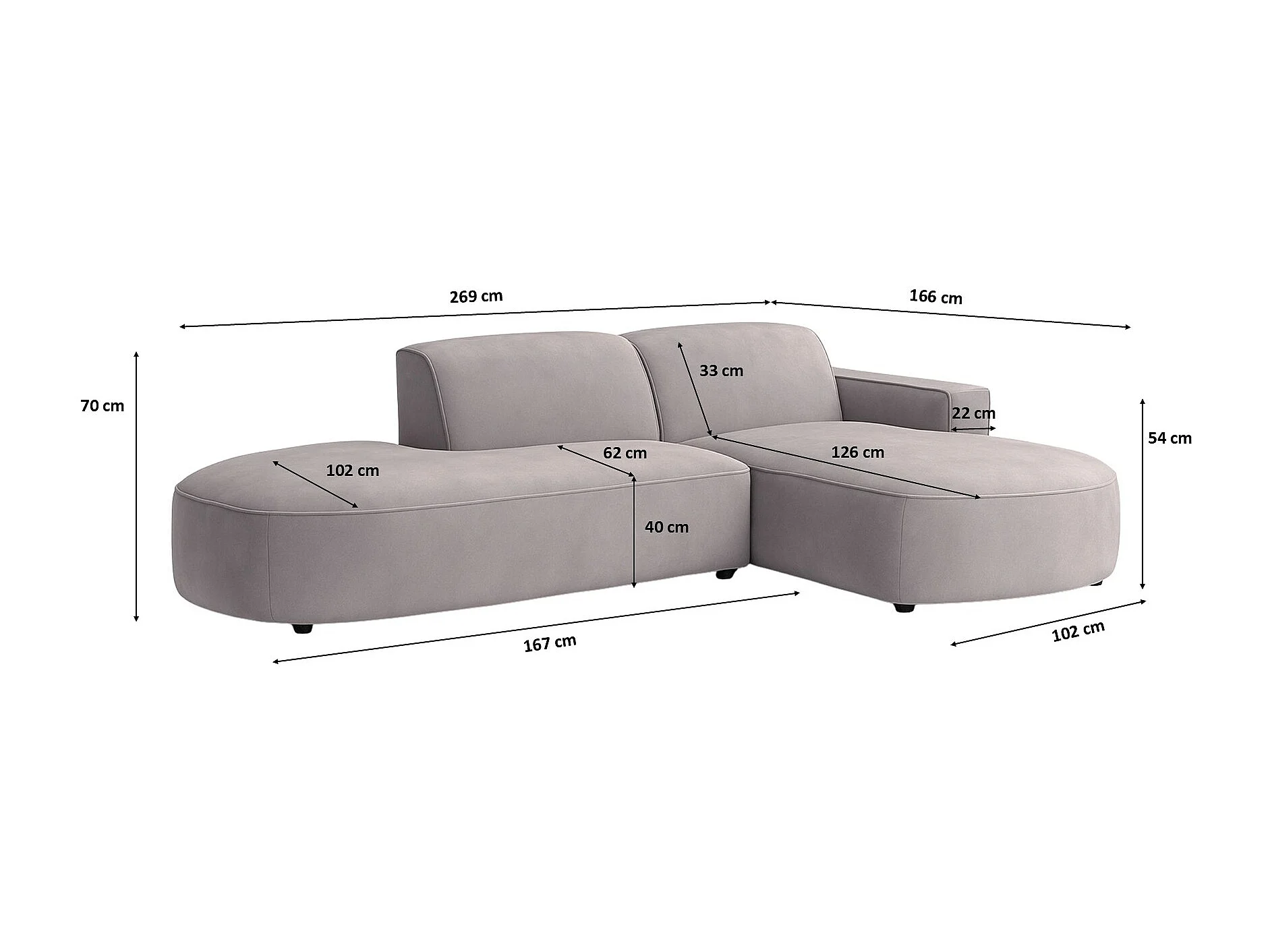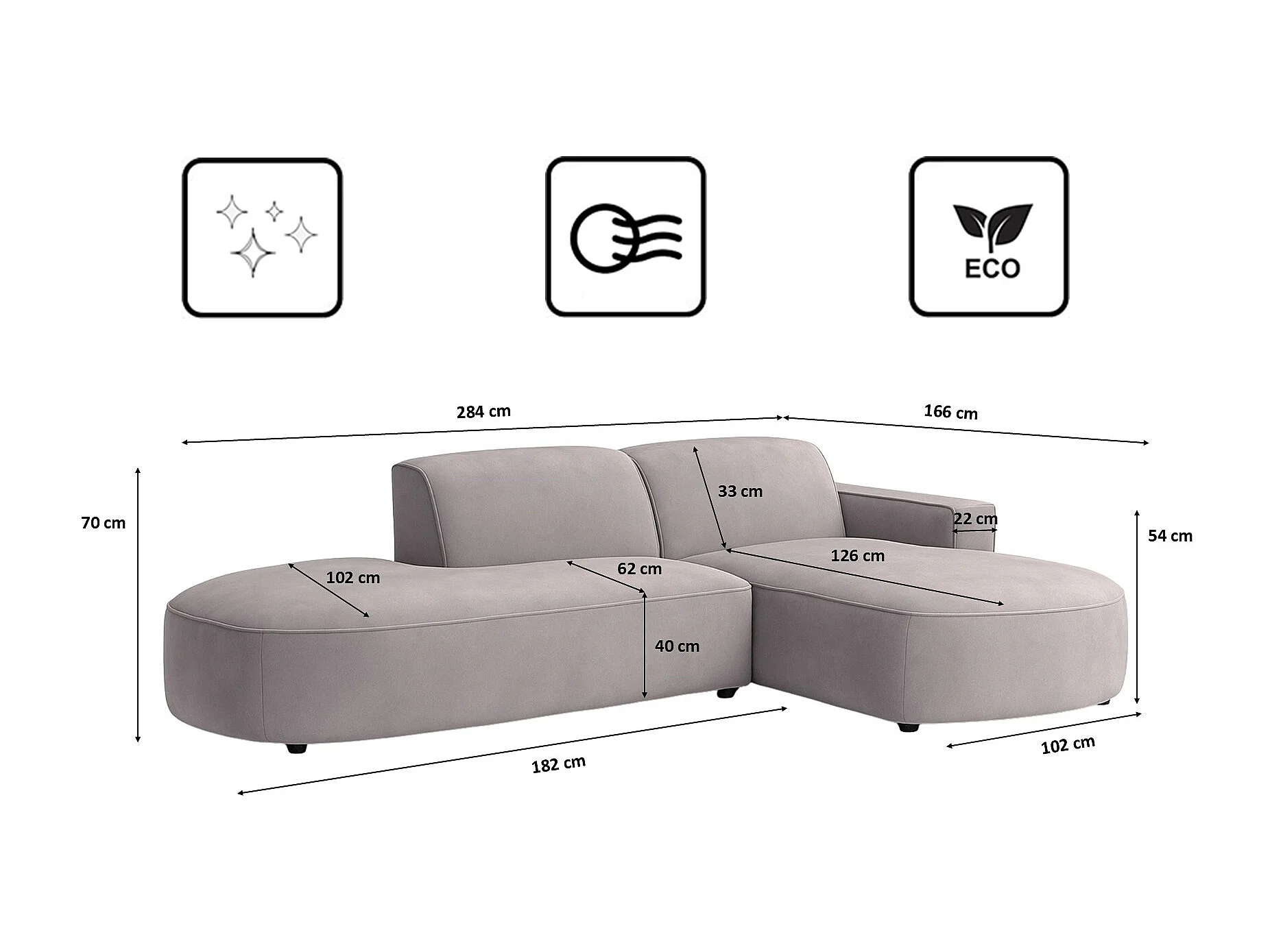 Canapé d'angle Cursal Atelier, tissu Salvador, gris, droit