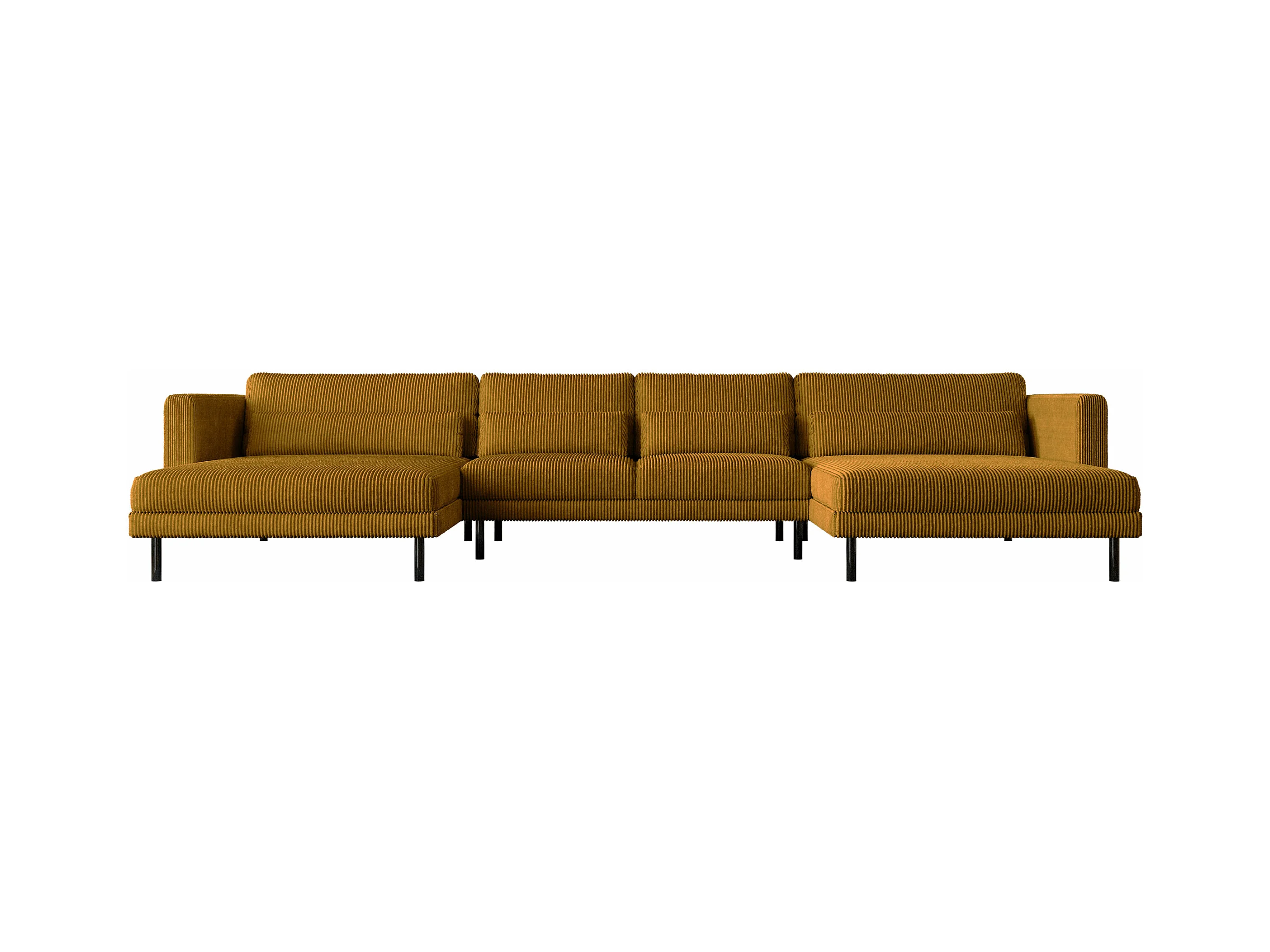 Cosmopolitan Design - Canapé d'angle droit "Arendal" 5 places en chenille avec un effet côtelé moutarde - 341x166x70cm