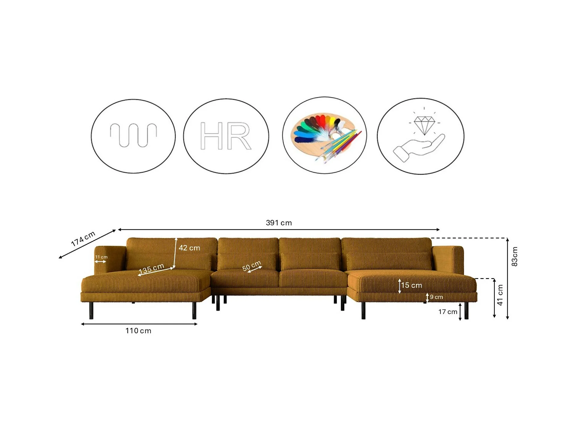 Canapé d'angle, Modena U XL, tissu Poso, couleur moutarde