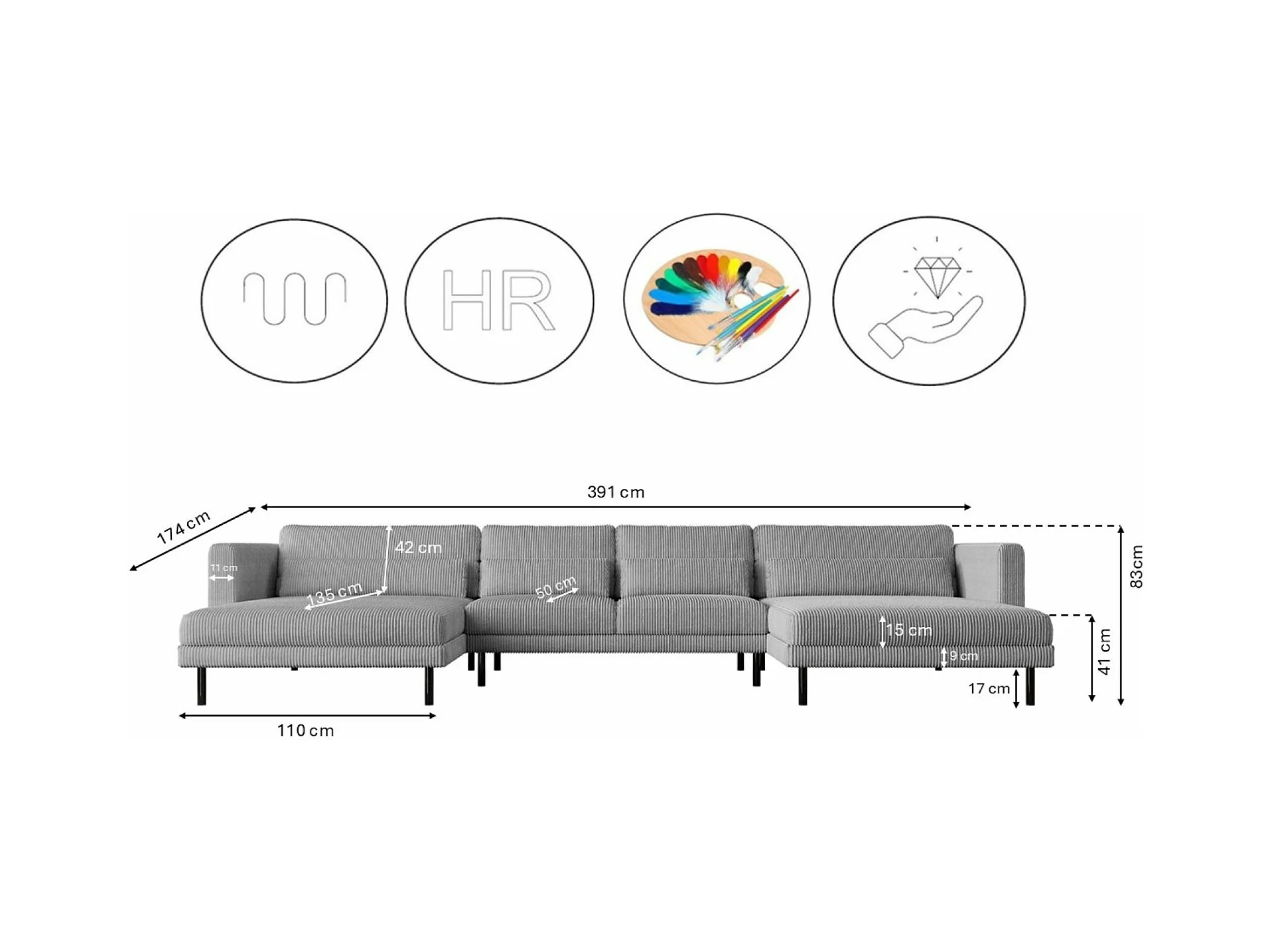Canapé d'angle DANI en U Tissu élégant Poso Silver