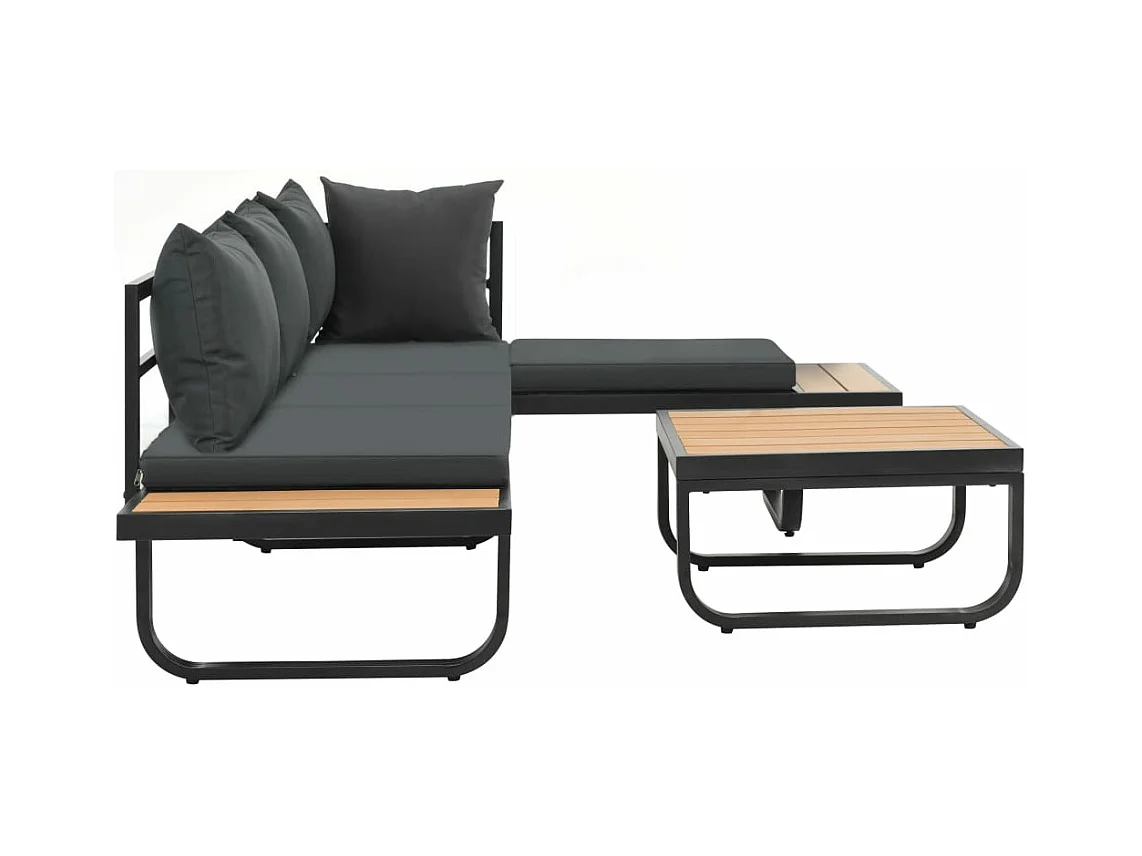 Canapé d'angle de jardin à 2 places avec coussins Aluminium WPC