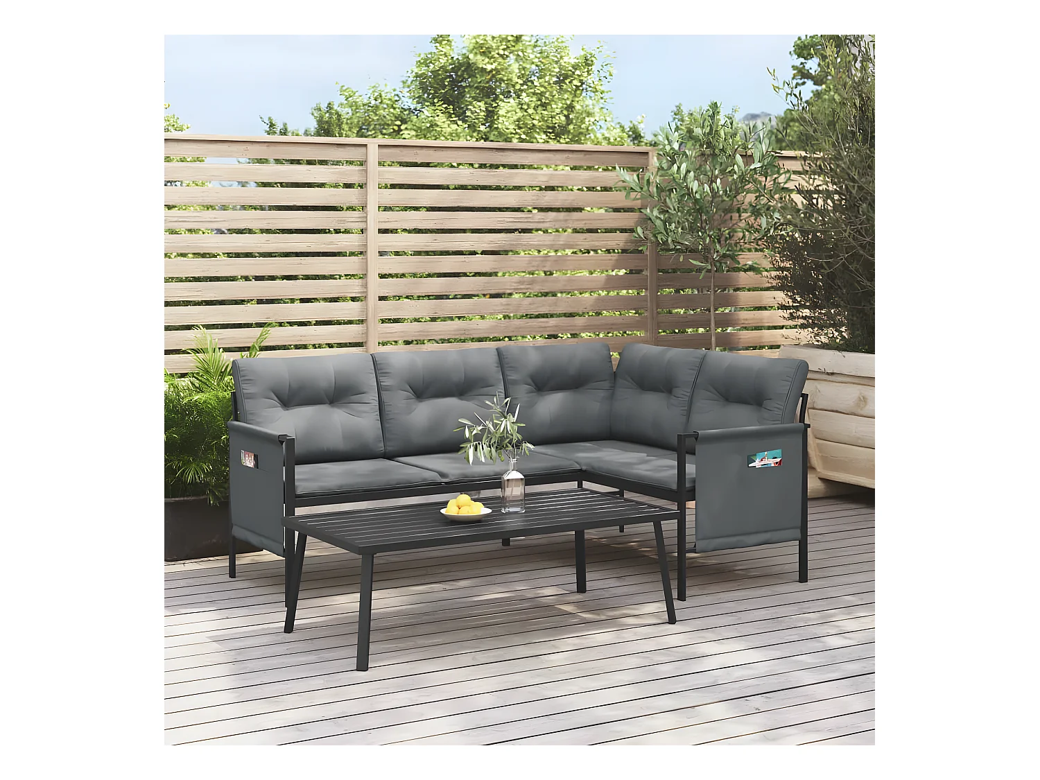 Canapé d'angle de jardin anthracite acier et textilène REO83084