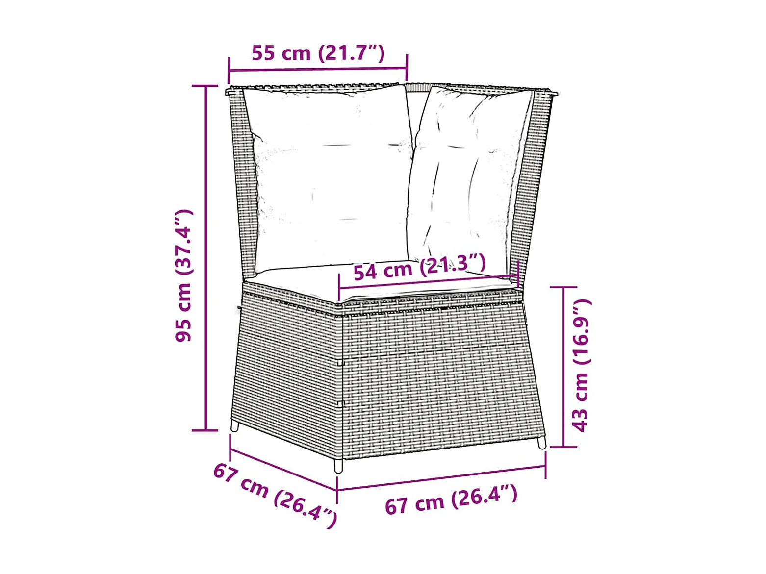 Canapé d'angle de jardin avec coussins beige résine tressée