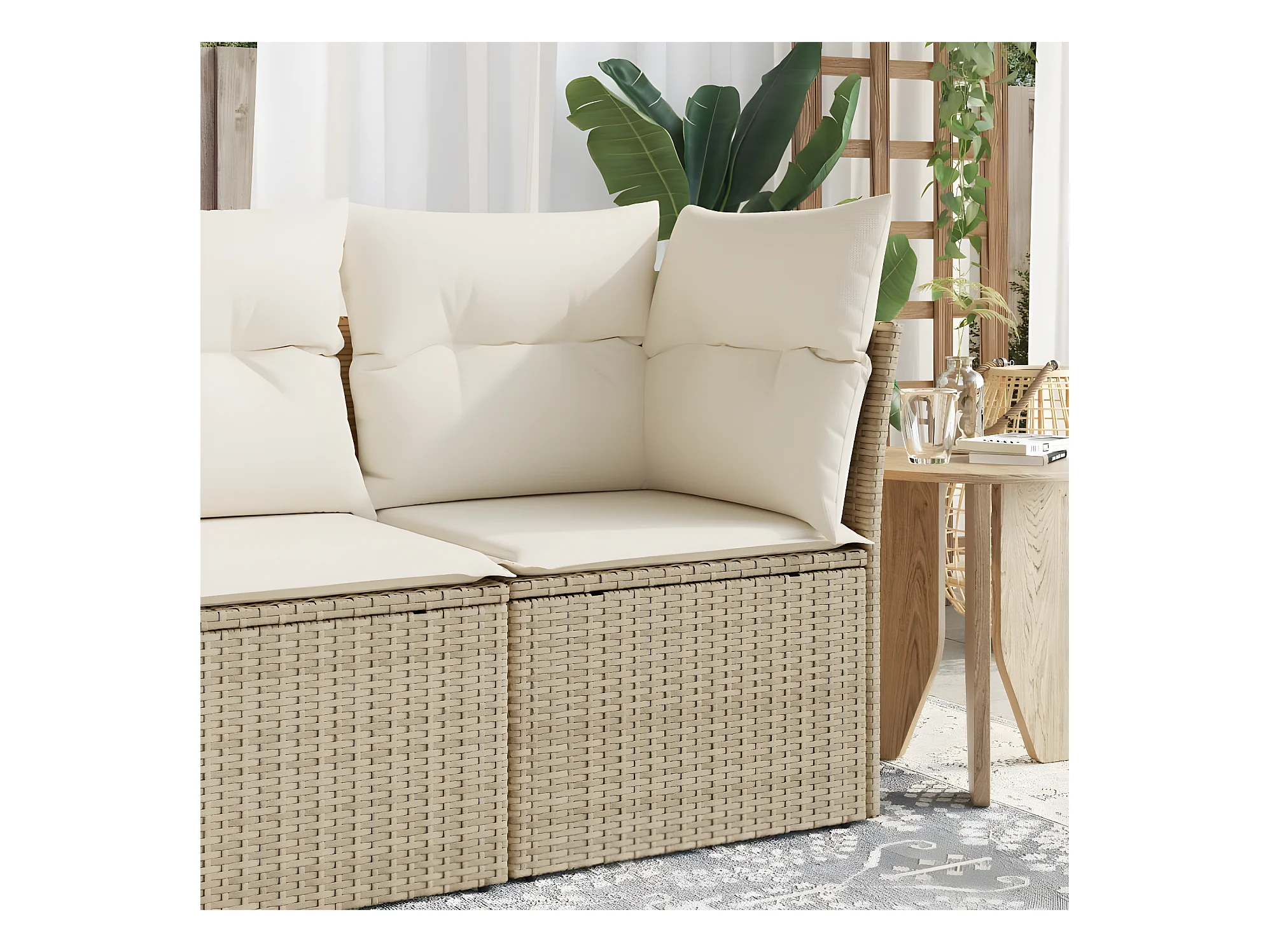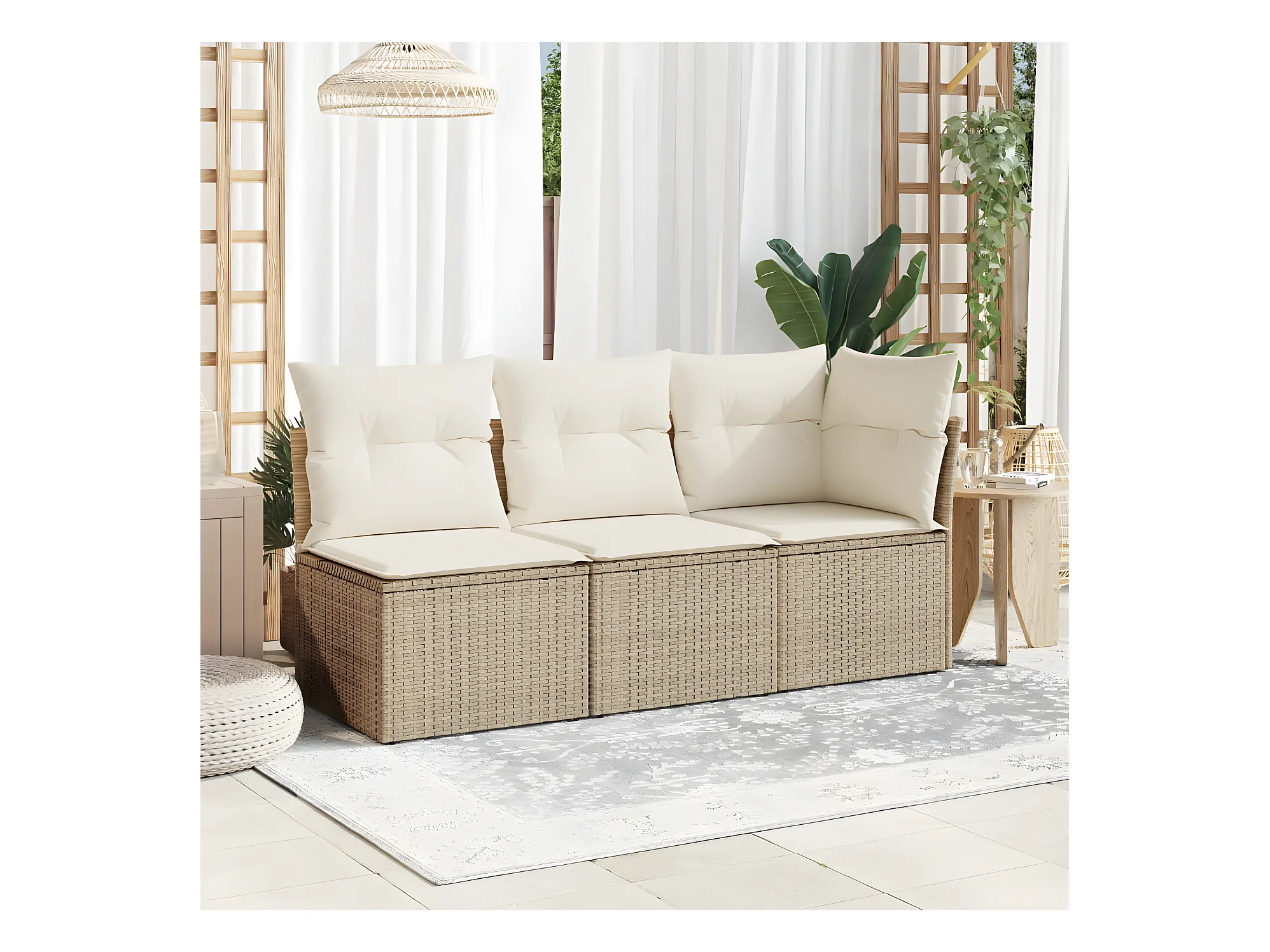 Canapé de jardin sans accoudoirs coussins beige résine tressée