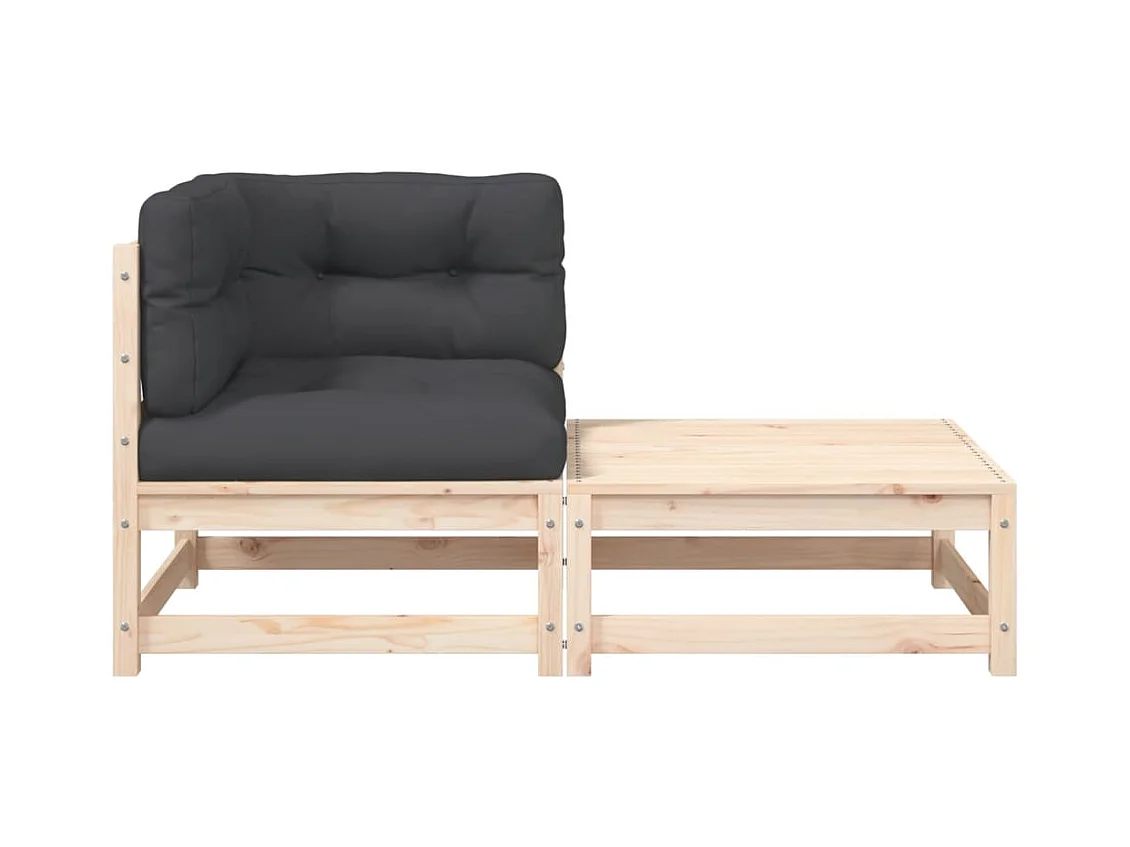 Canapé de jardin avec coussins 2 places bois de pin massif