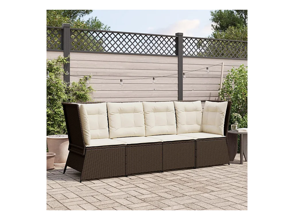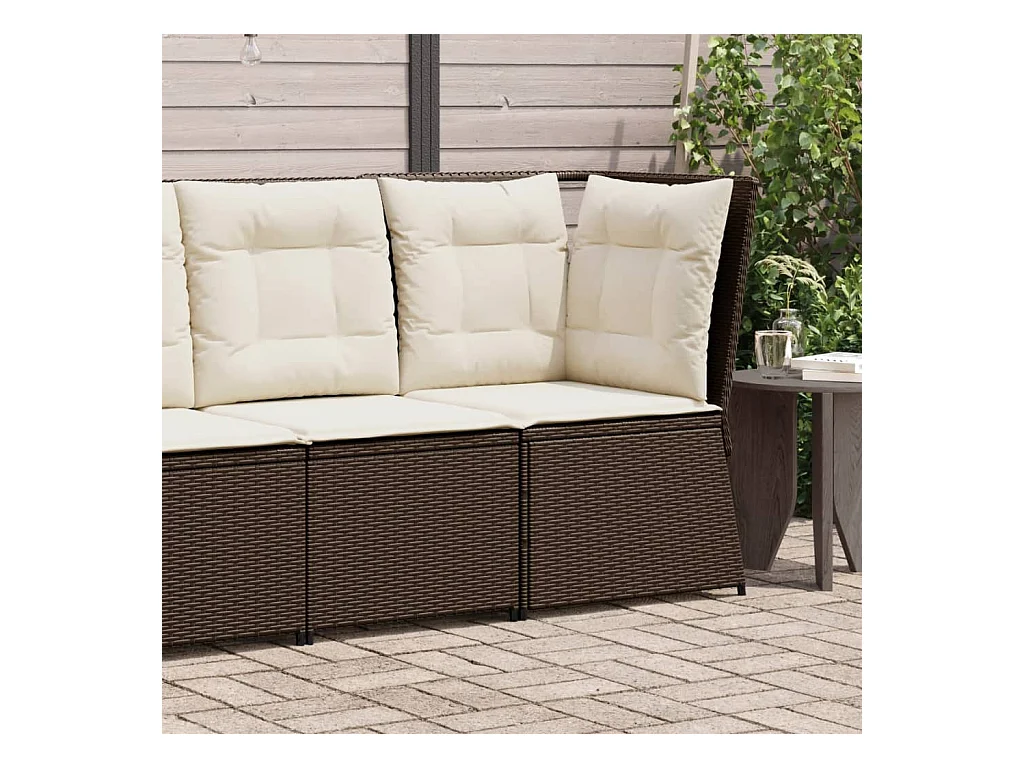 Canapé d'angle de jardin avec coussins marron résine tressée