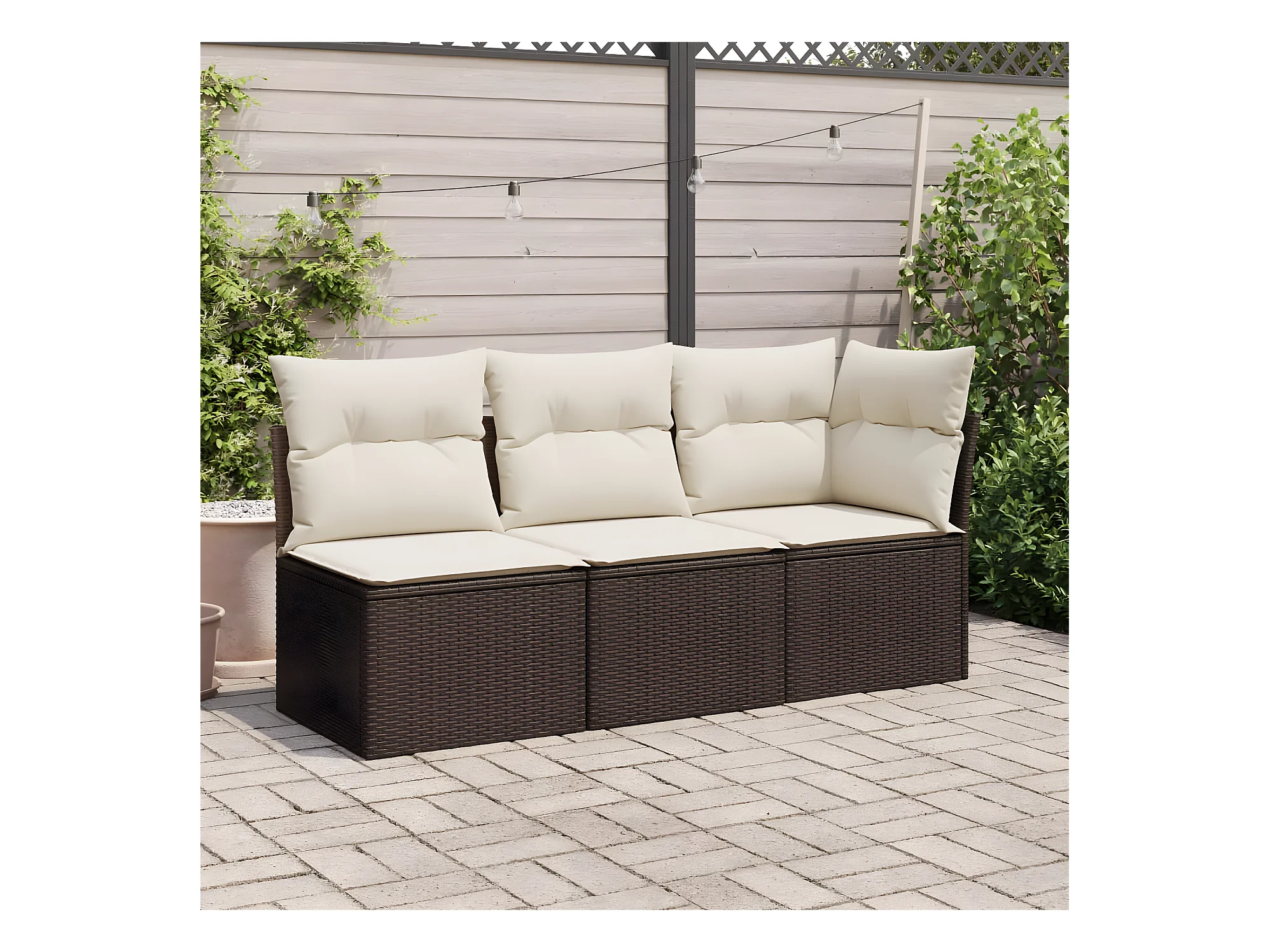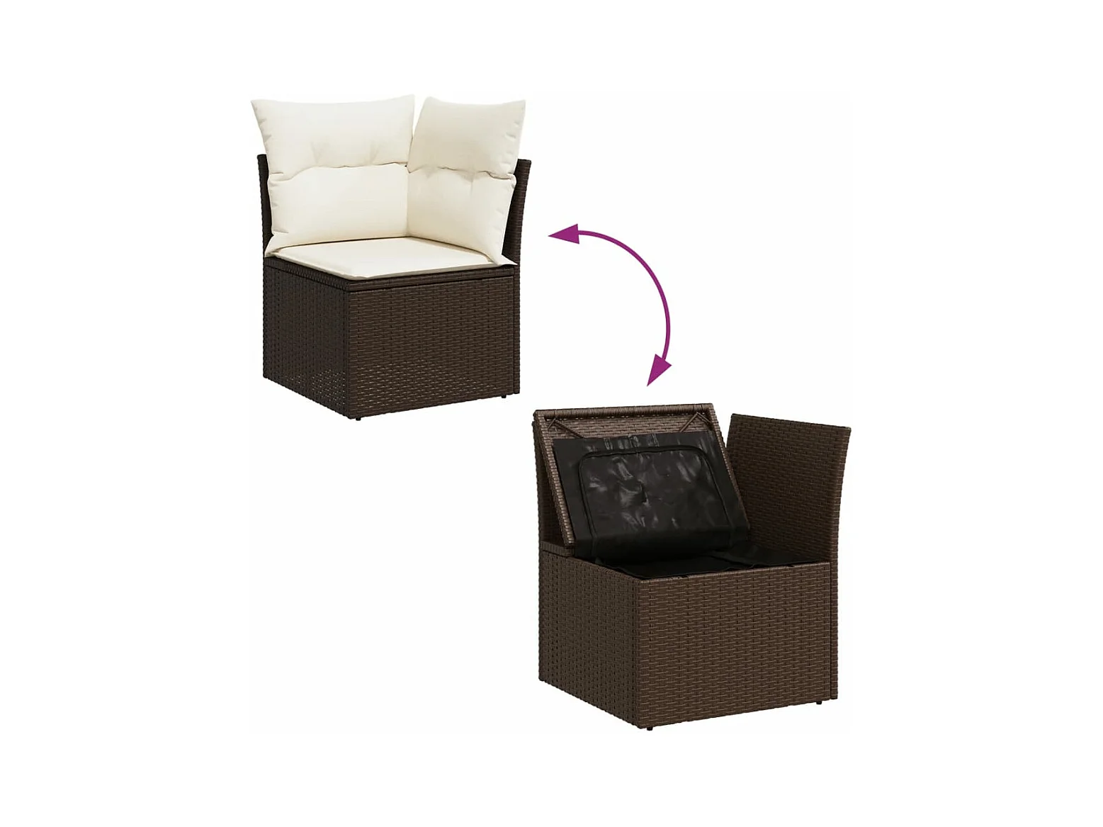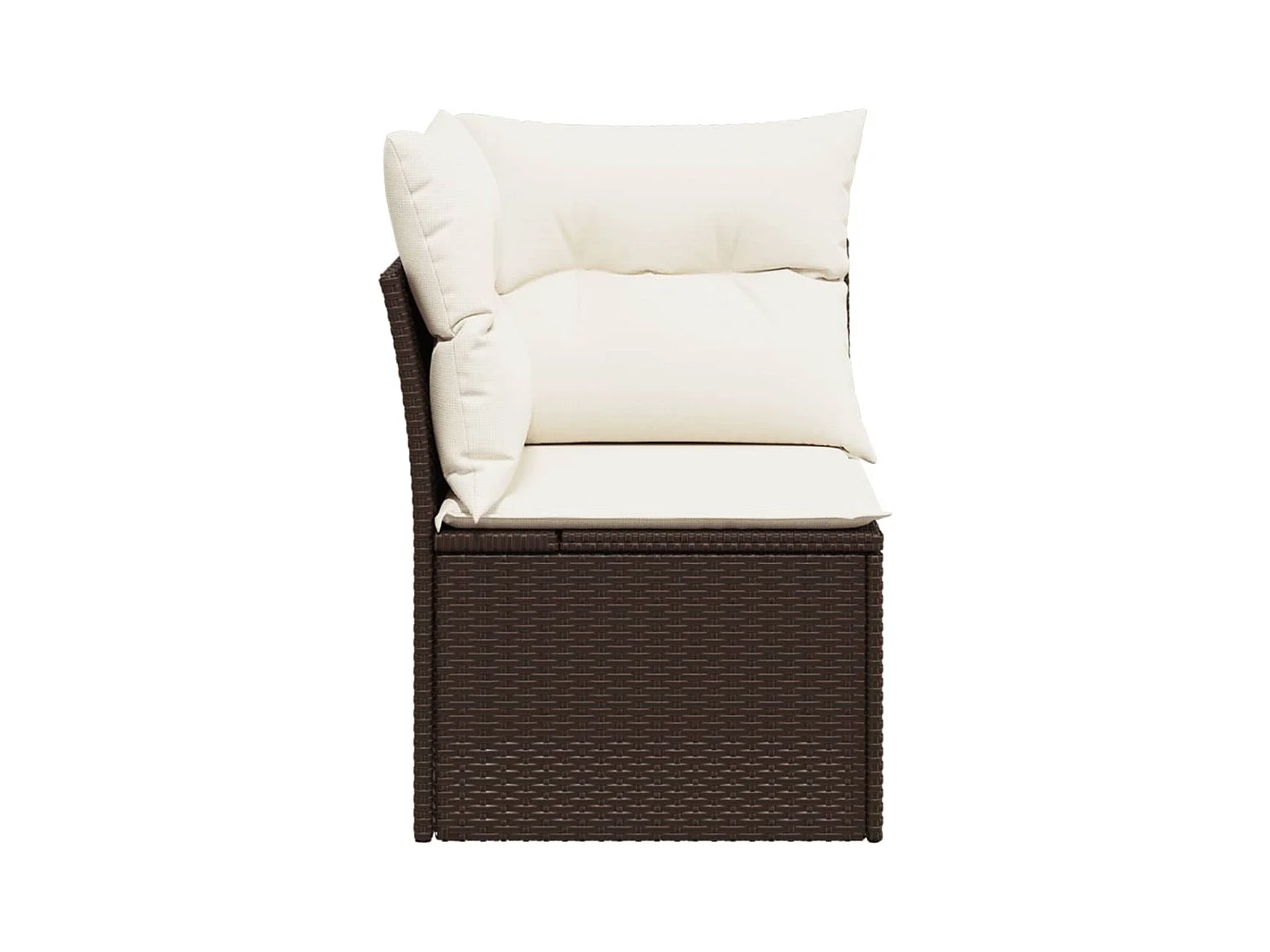 Canapé d'angle de jardin avec coussins marron résine tressée
