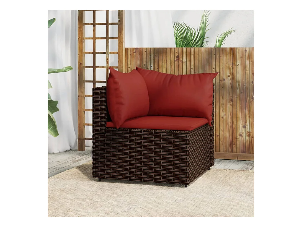 Canapé d'angle de jardin avec coussins marron résine tressée REO98383