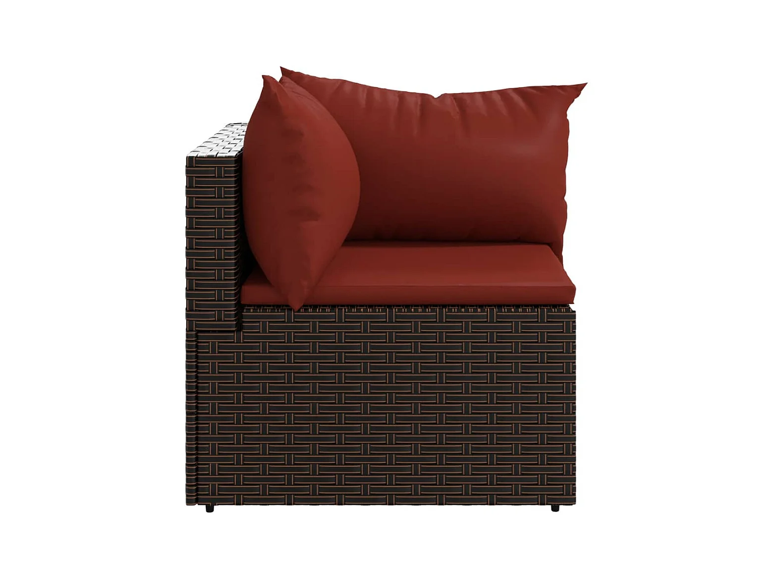 Canapé d'angle de jardin avec coussins marron résine tressée REO86783