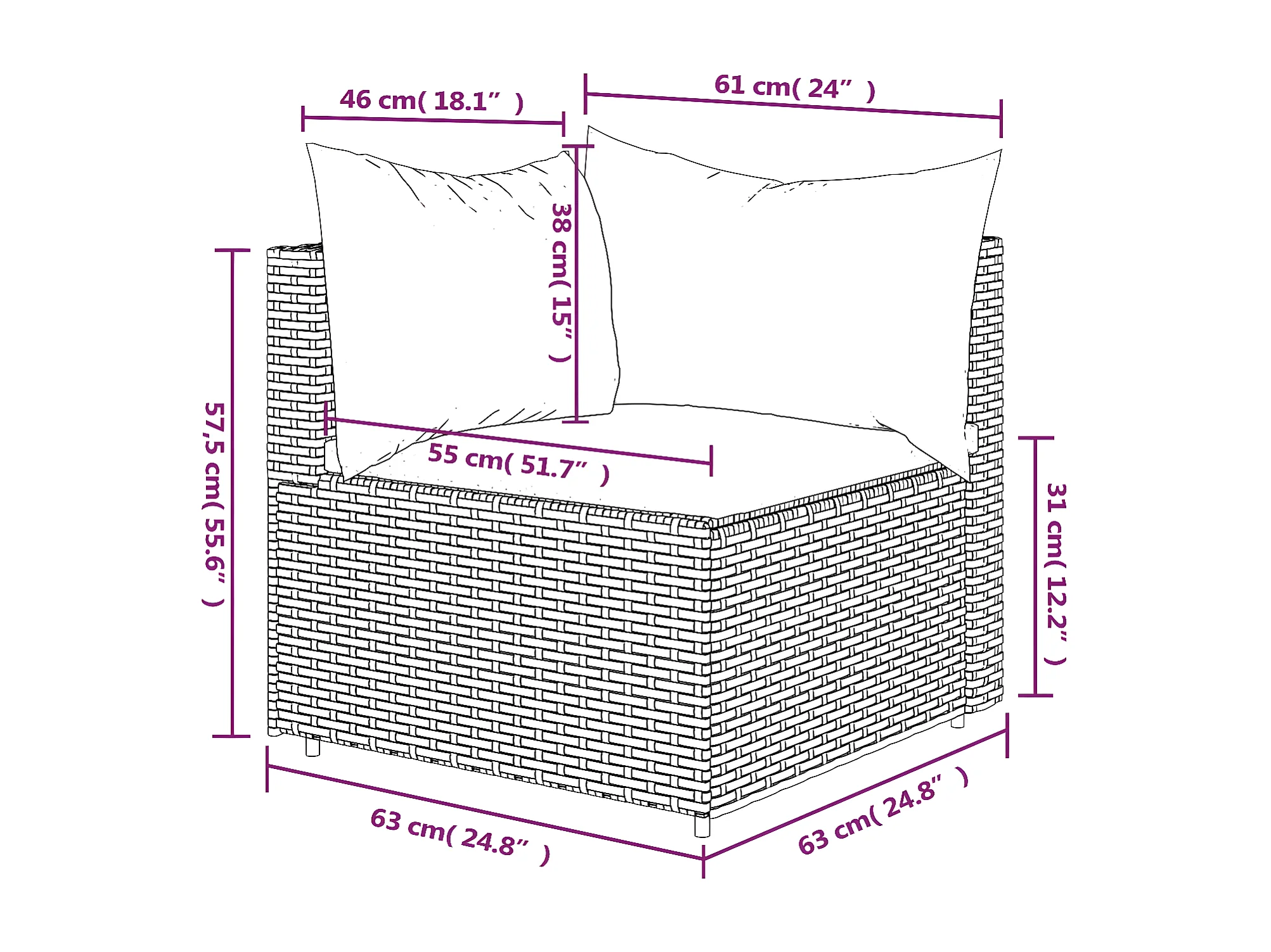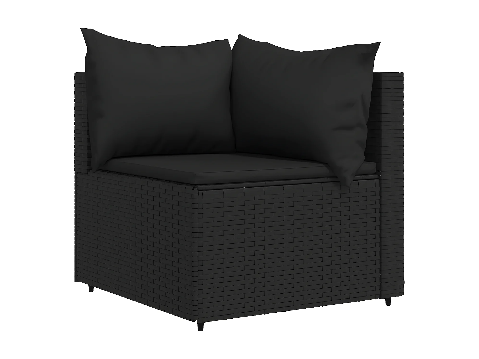 Canapé d'angle de jardin avec coussins Noir Résine tressée