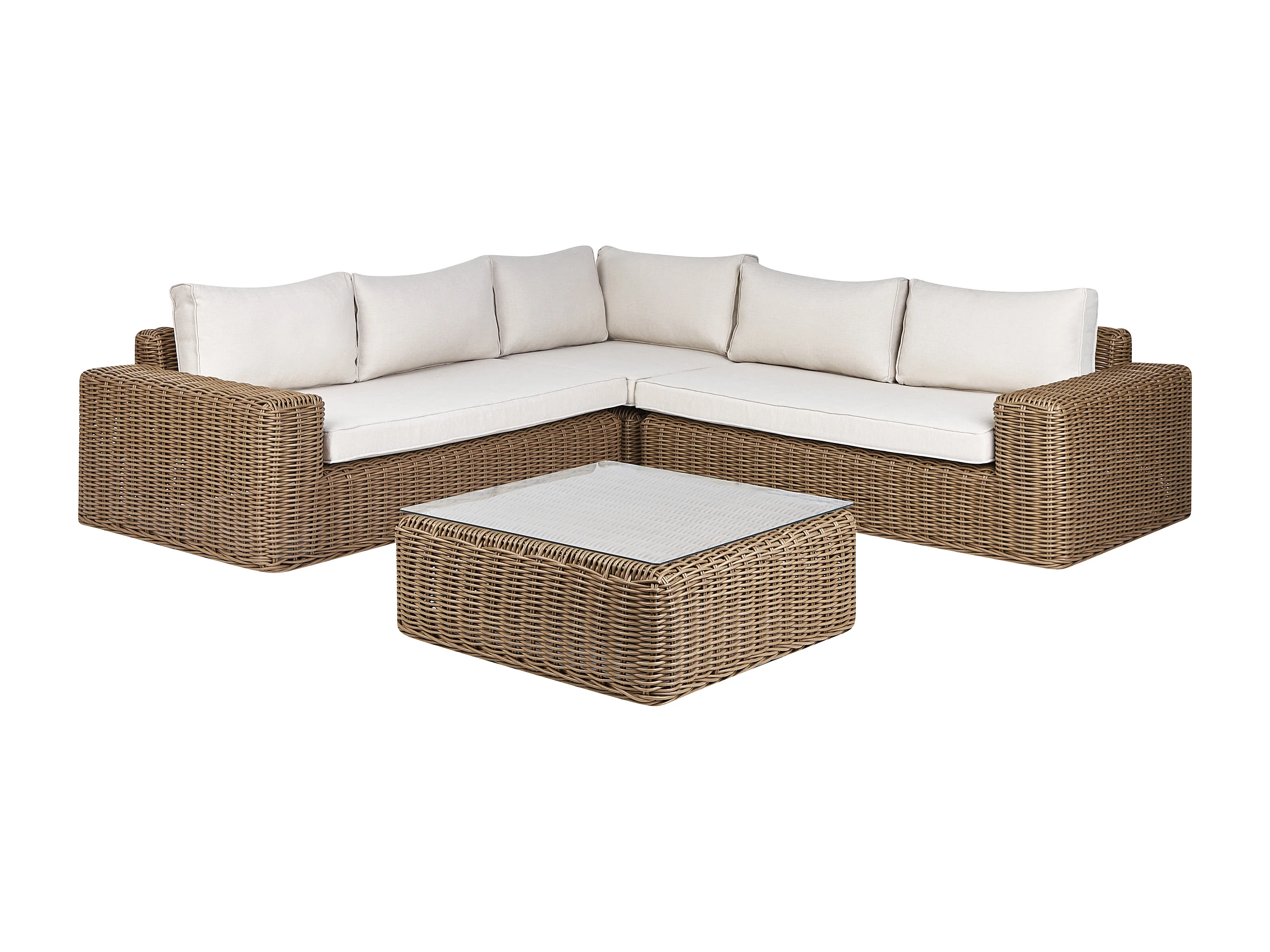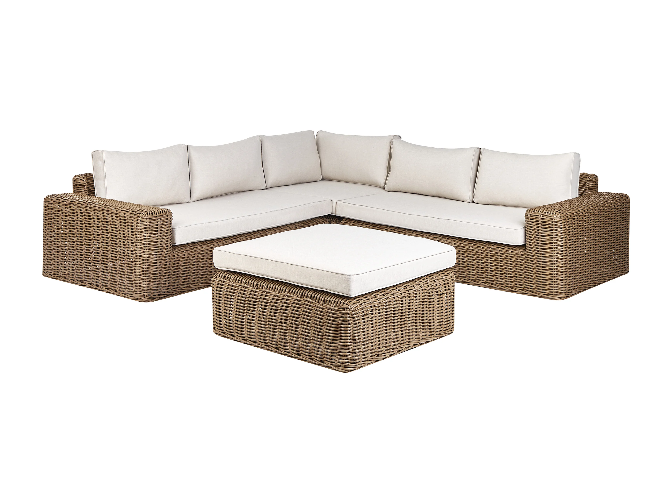 Canapé d\'angle de jardin avec ottoman 6 places PALERMO Marron