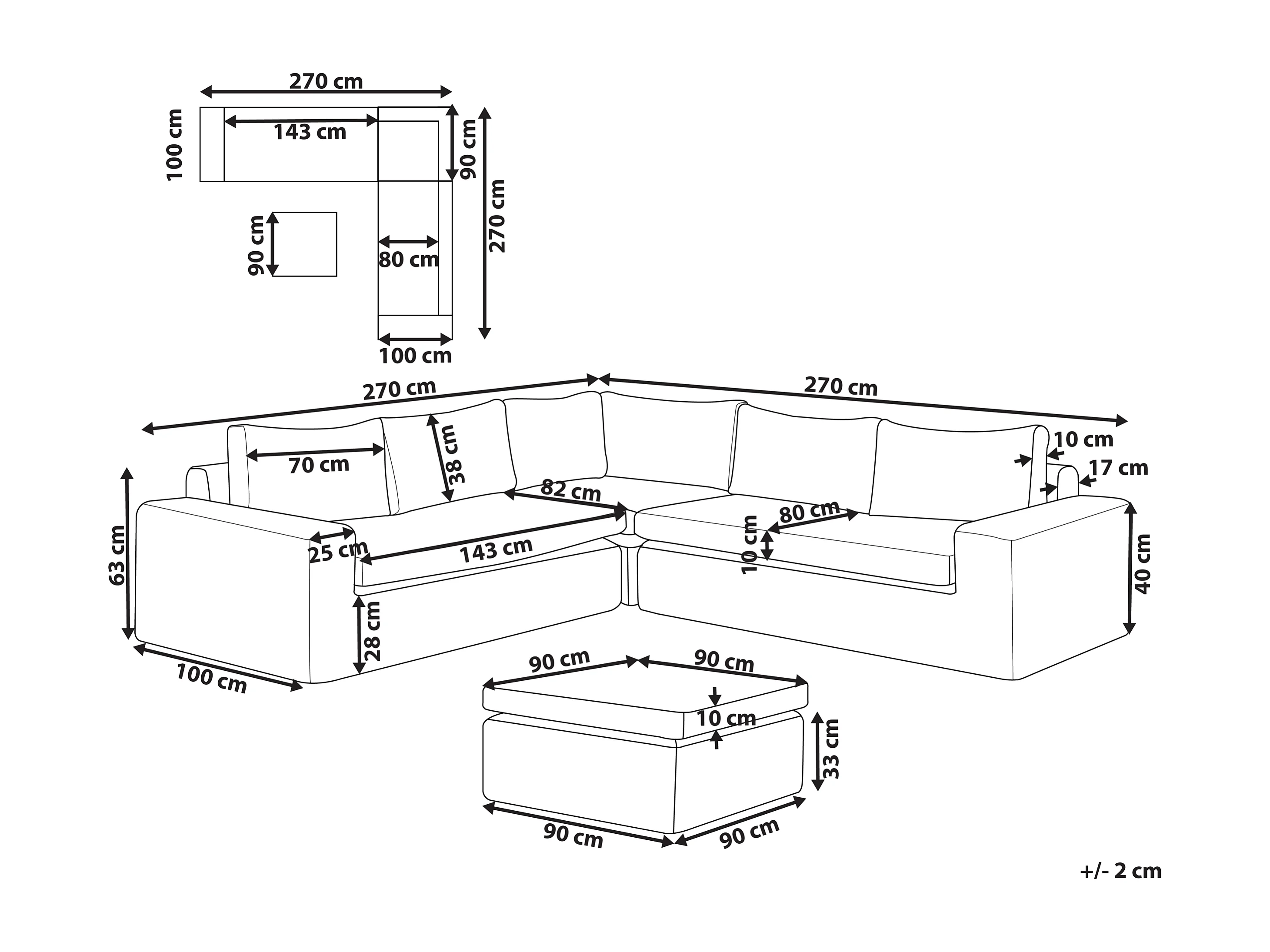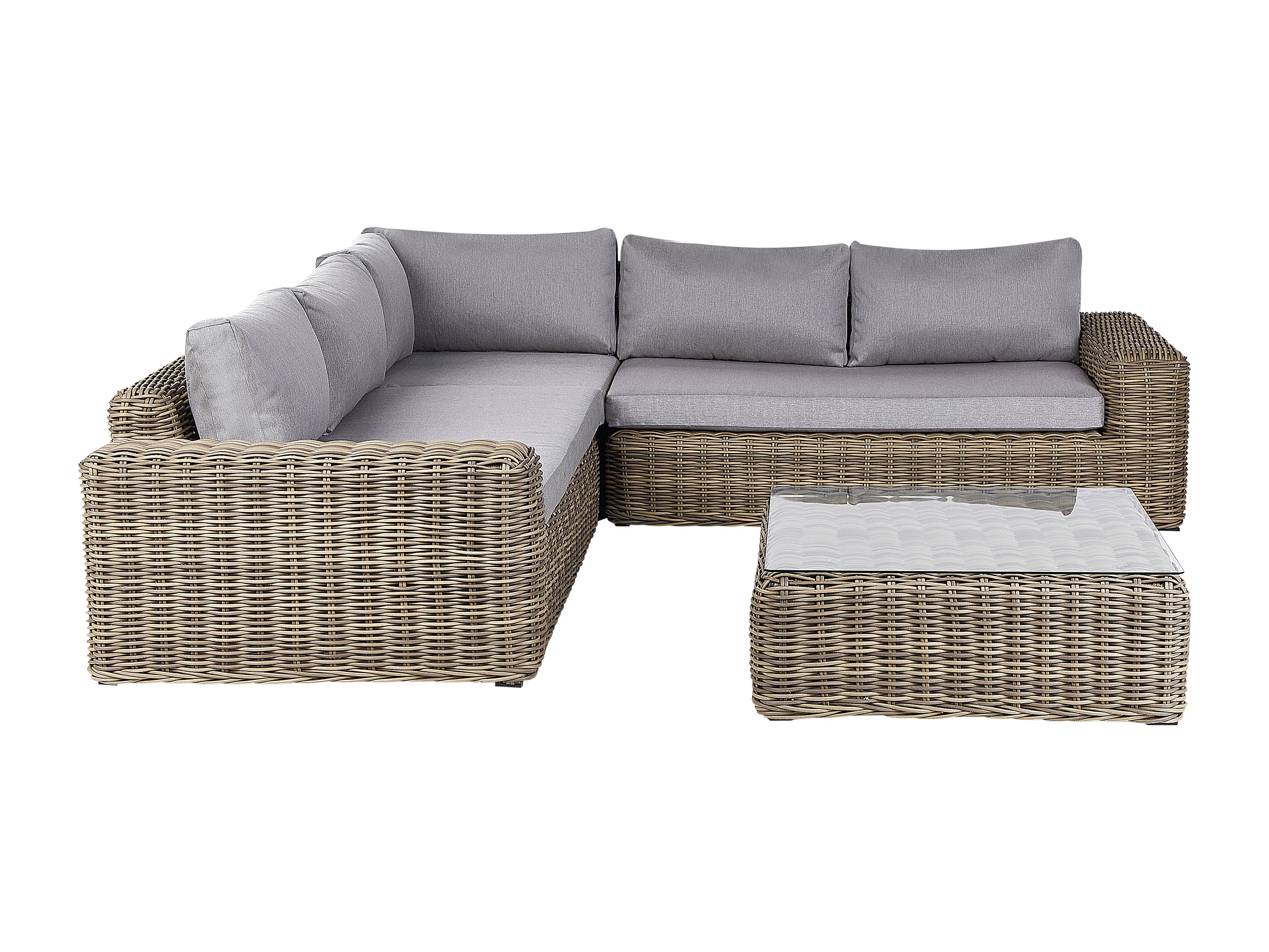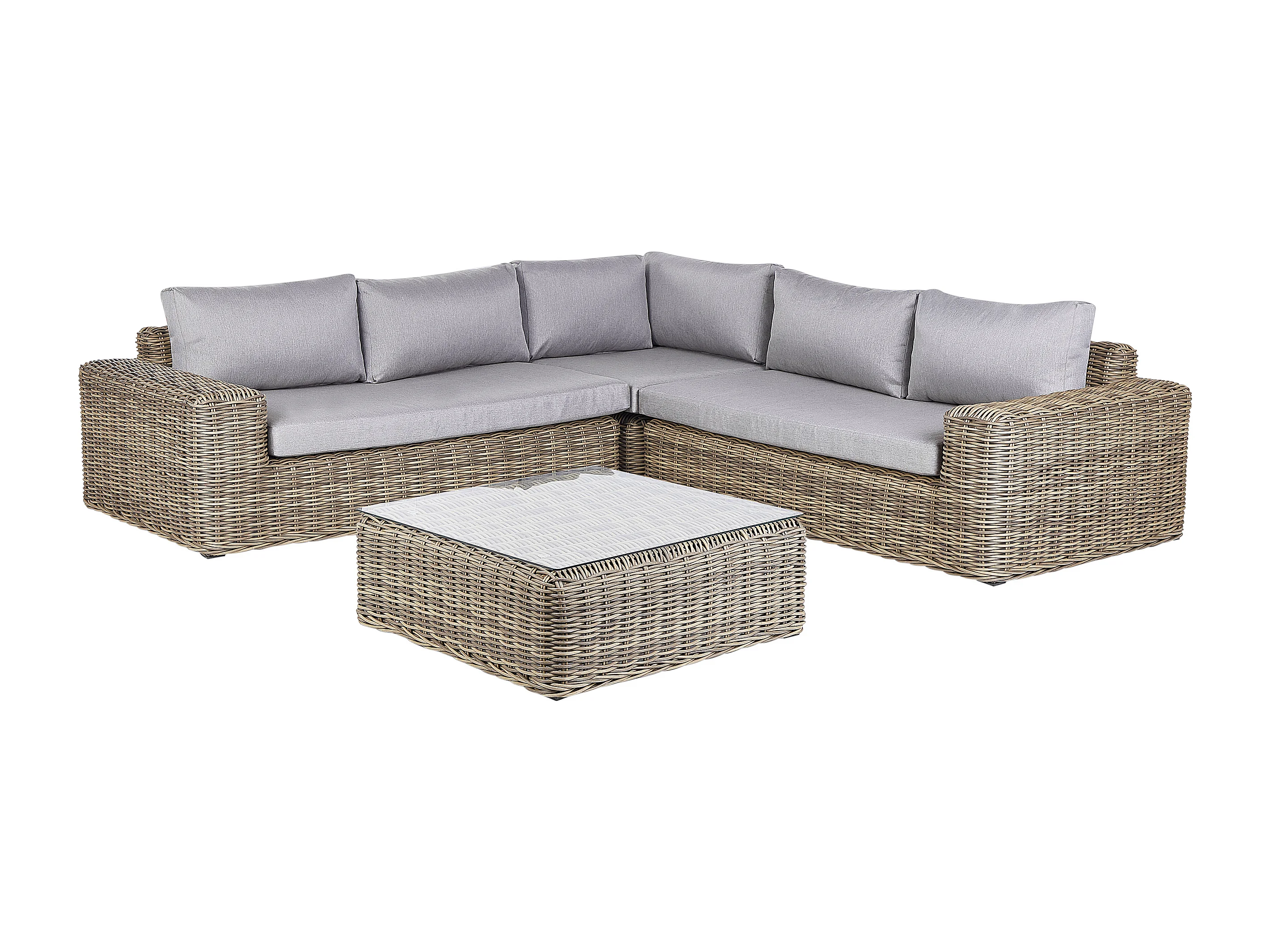 Canapé d'angle de jardin avec ottoman 6 places PALERMO Marron clair