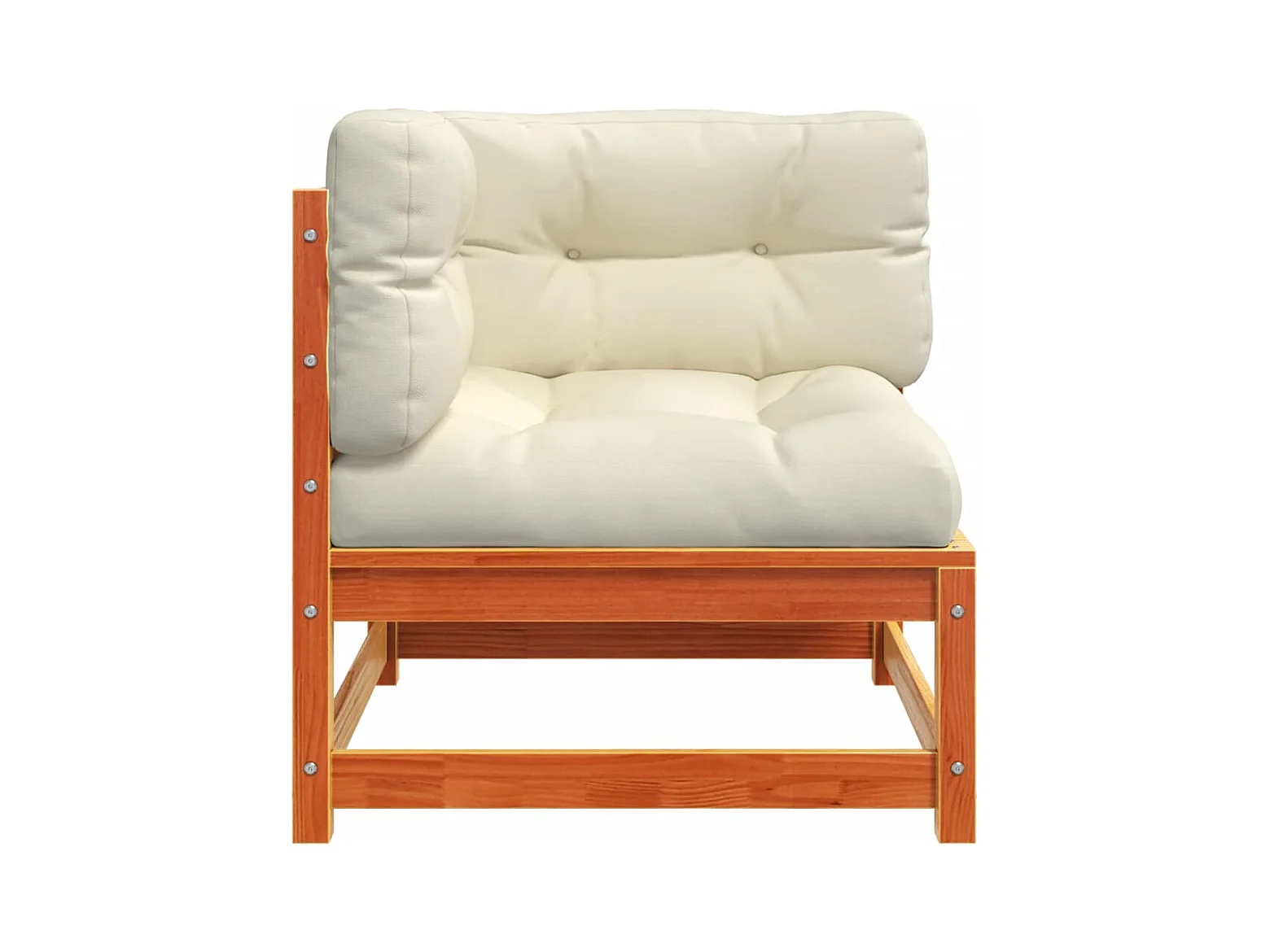 Canapé d'angle de jardin coussins cire marron bois pin massif