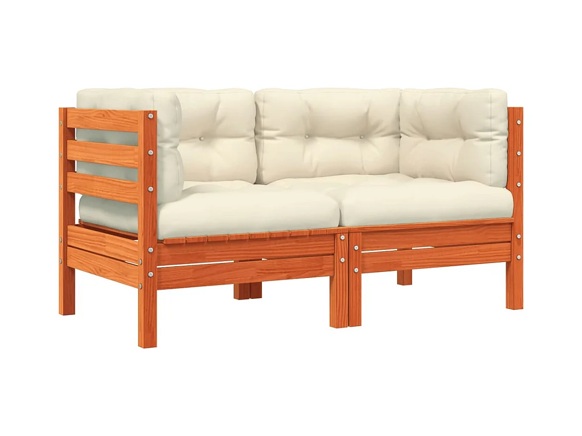 Canapé d'angle de jardin coussins cire marron pin massif FR40503