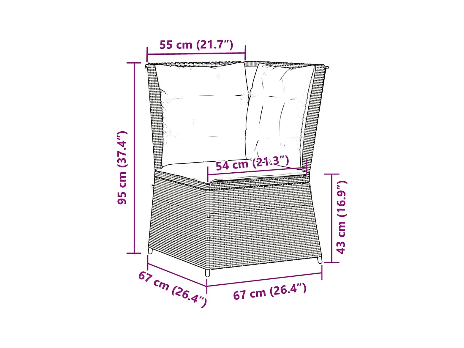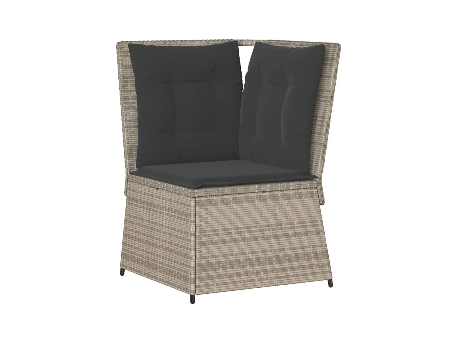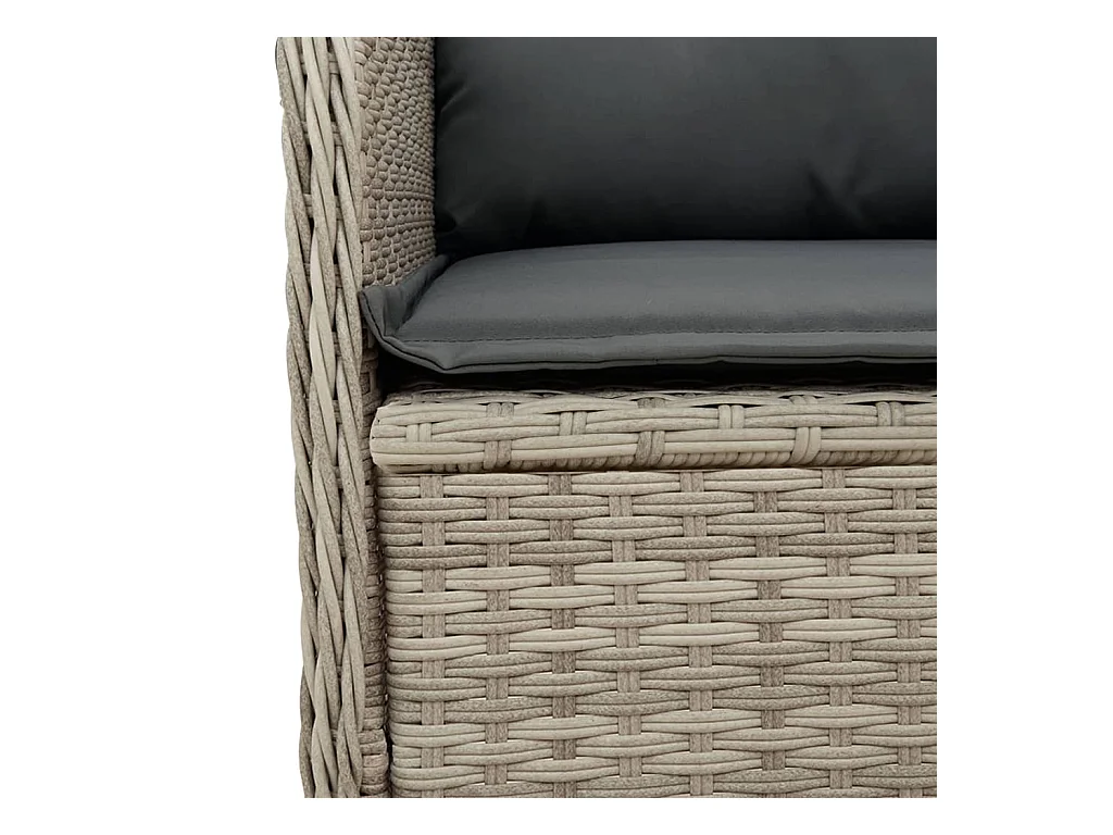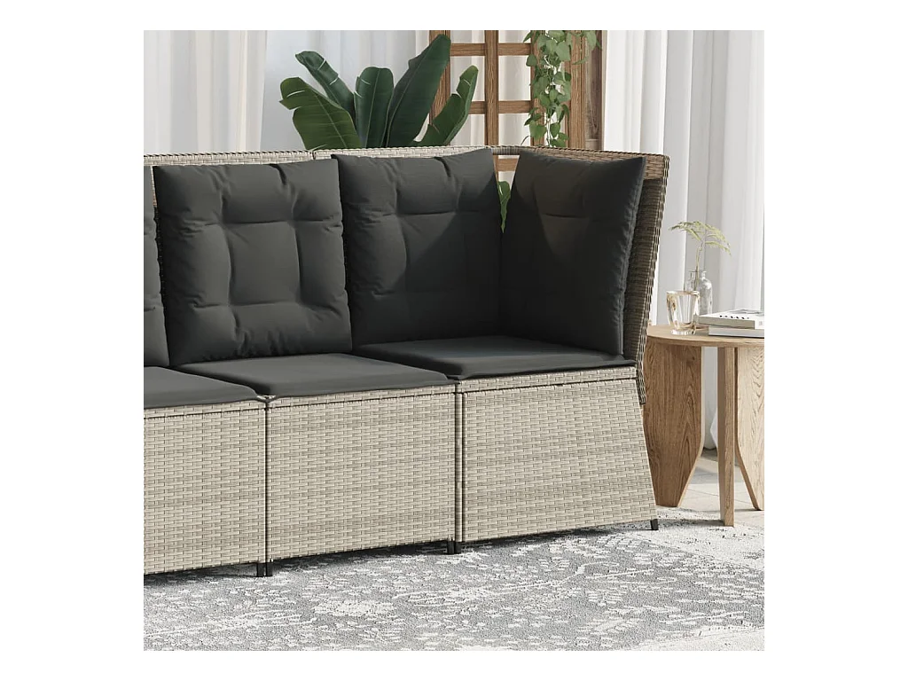 Canapé d'angle de jardin et coussins gris clair résine tressée