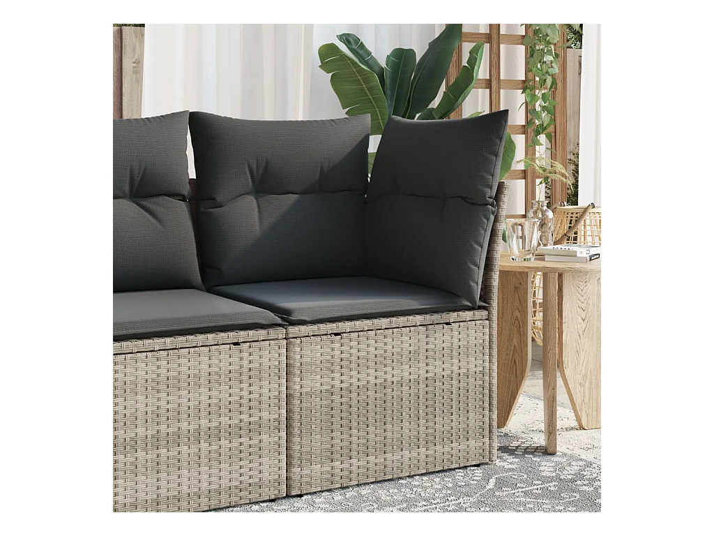 Canapé d'angle de jardin et coussins gris clair résine tressée FR877215