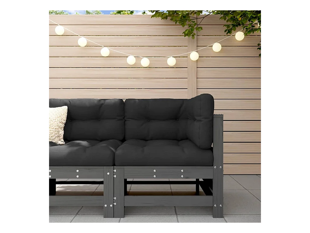 Canapé d'angle de jardin avec coussins gris Bois de pin massif FR56138
