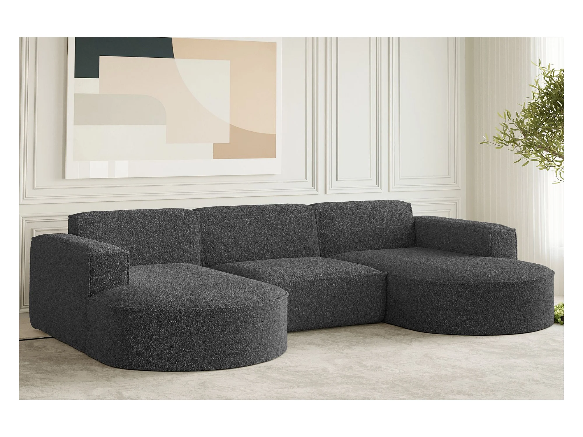 Canapé d'angle en U Siena avec tissu Artico anthracite