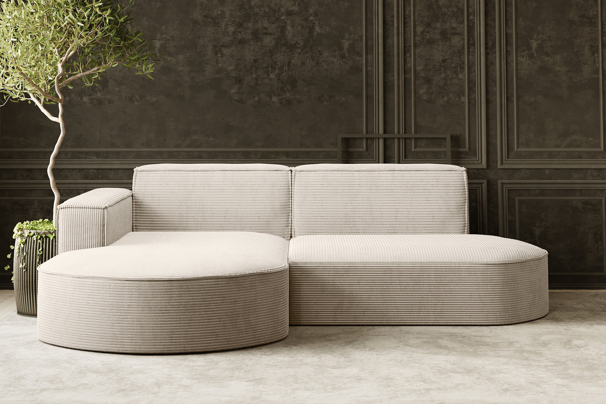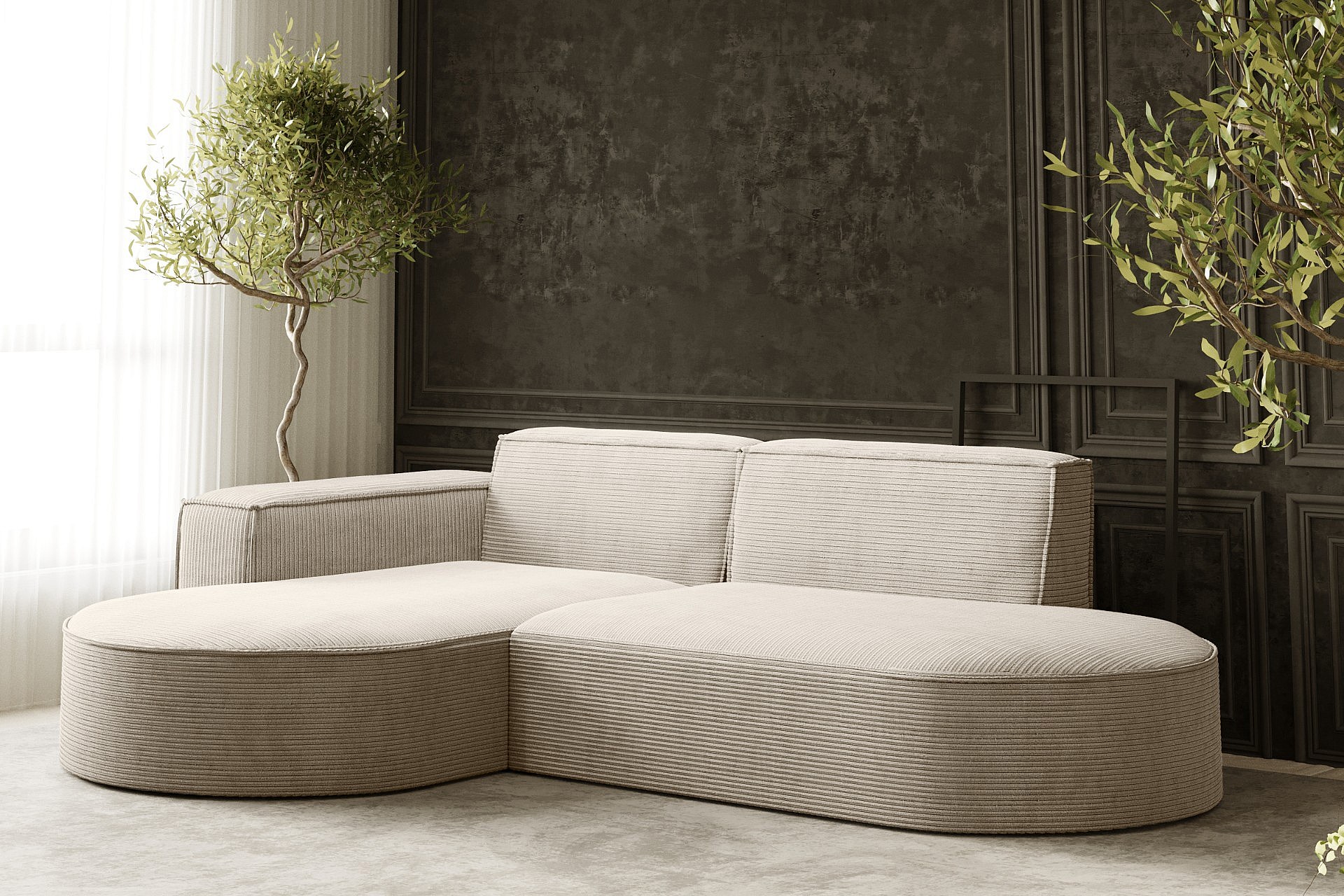 Canapé d'angle Designer MODENA STUDIO tissu Cordon épais Poso Beige Gauche