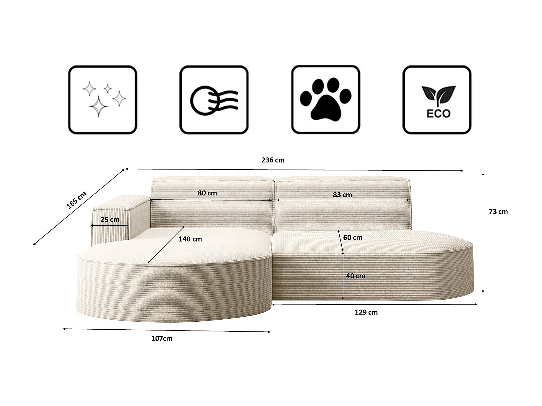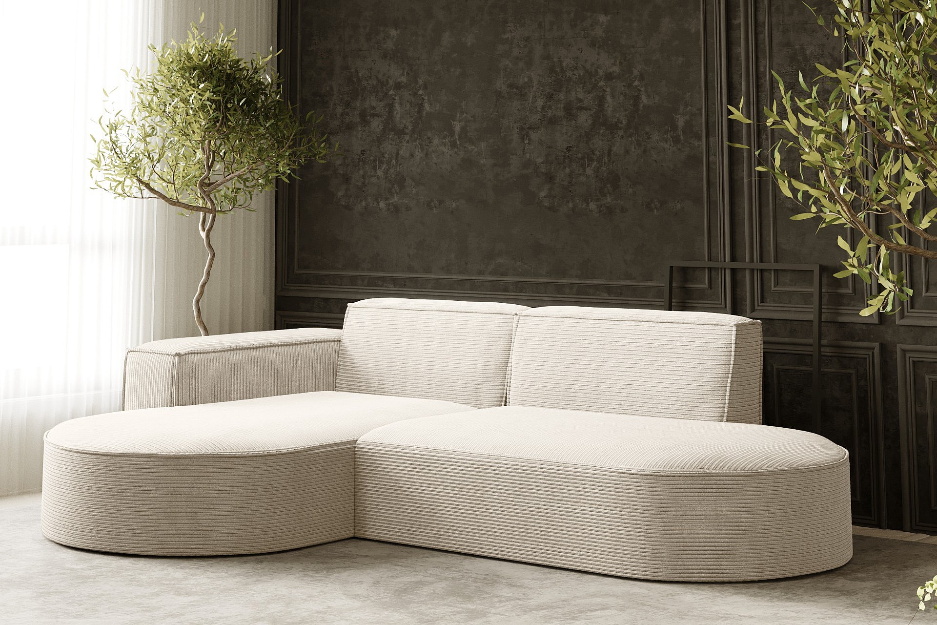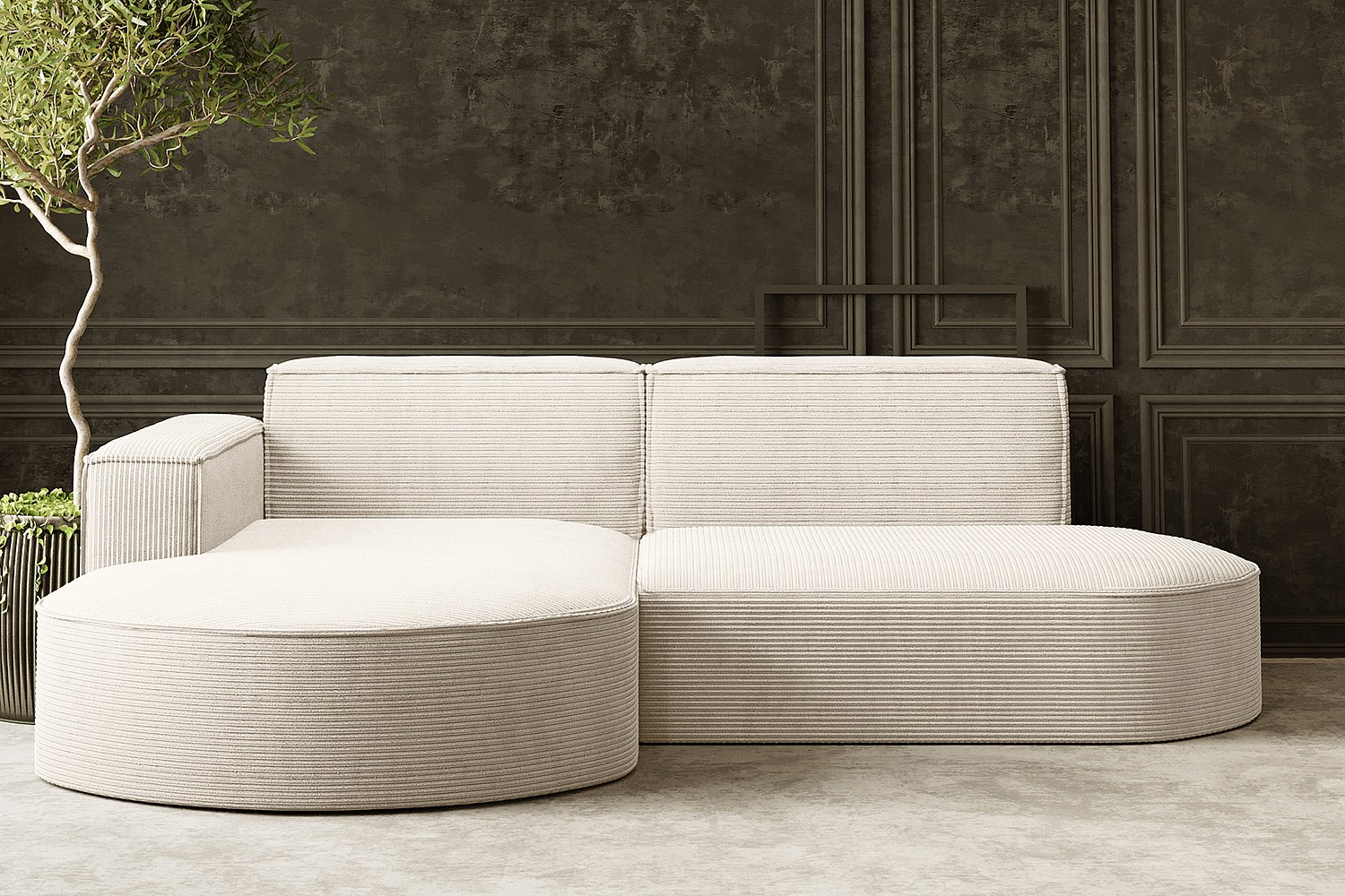 Canapé d'angle Designer MODENA STUDIO tissu Cordon épais Poso Ecru Gauche