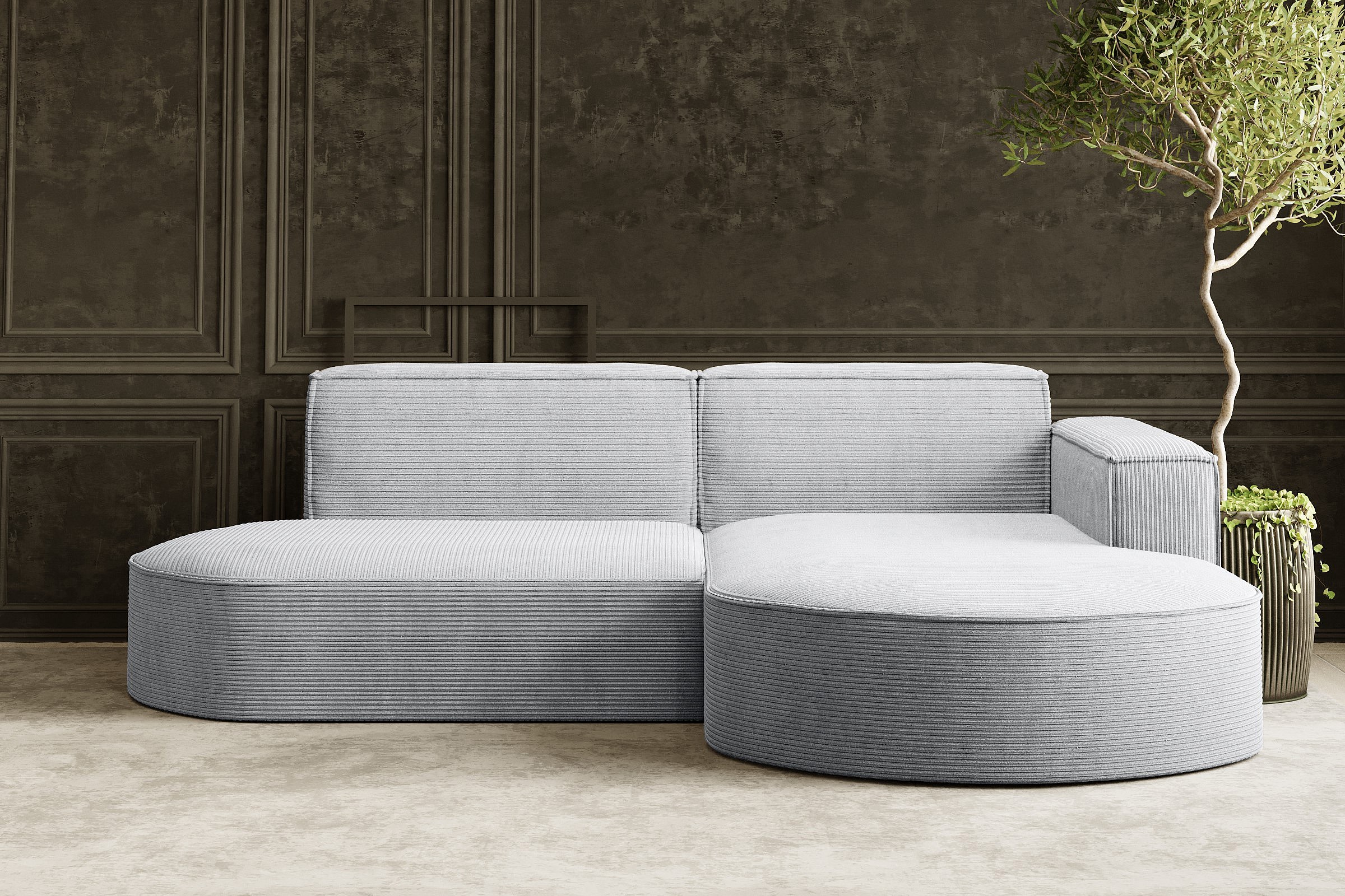 Canapé d'angle Designer MODENA STUDIO tissu Cordon épais Poso Gris Clair Droit