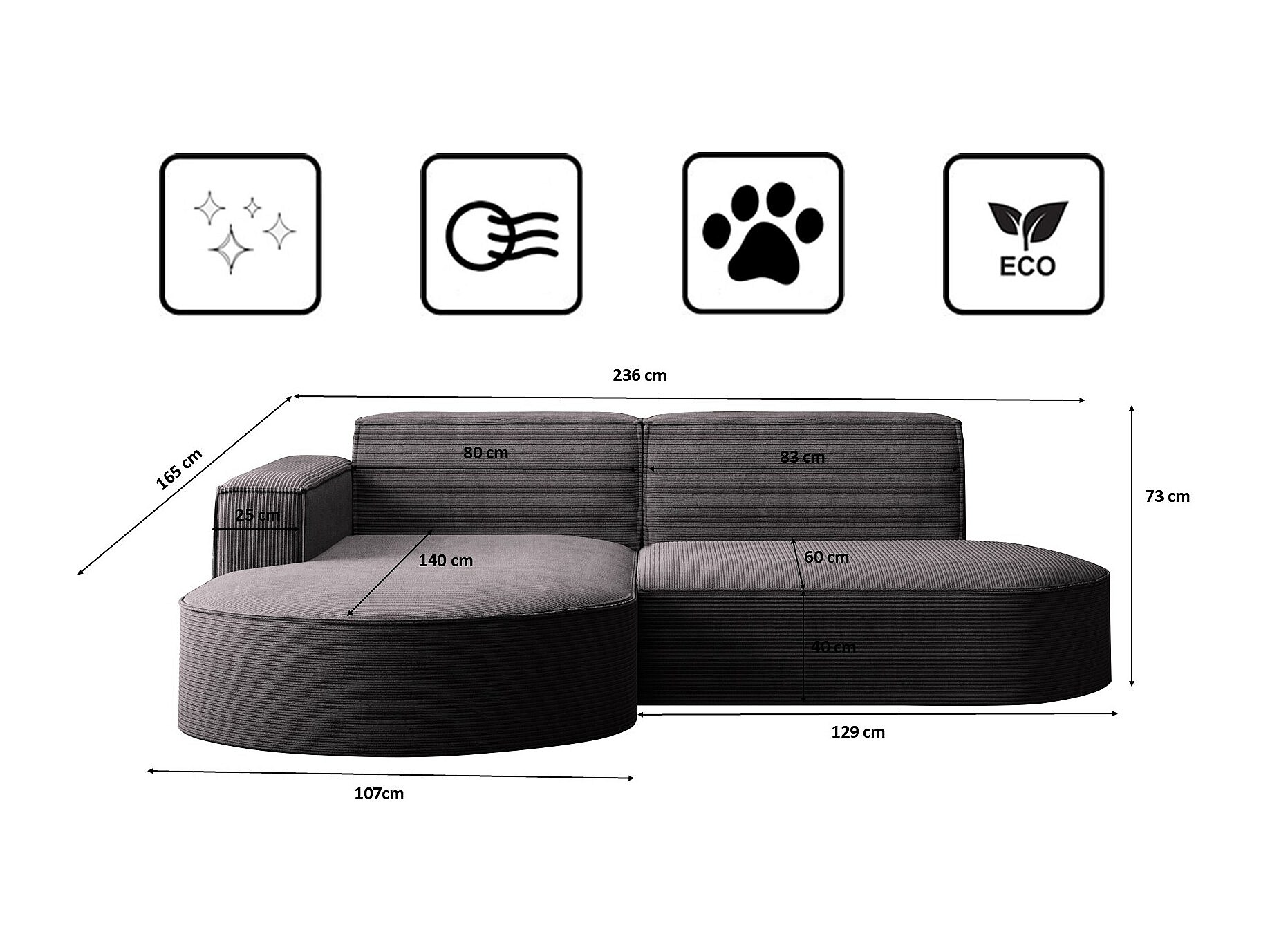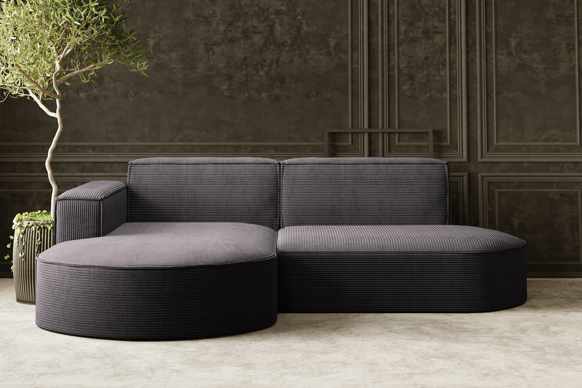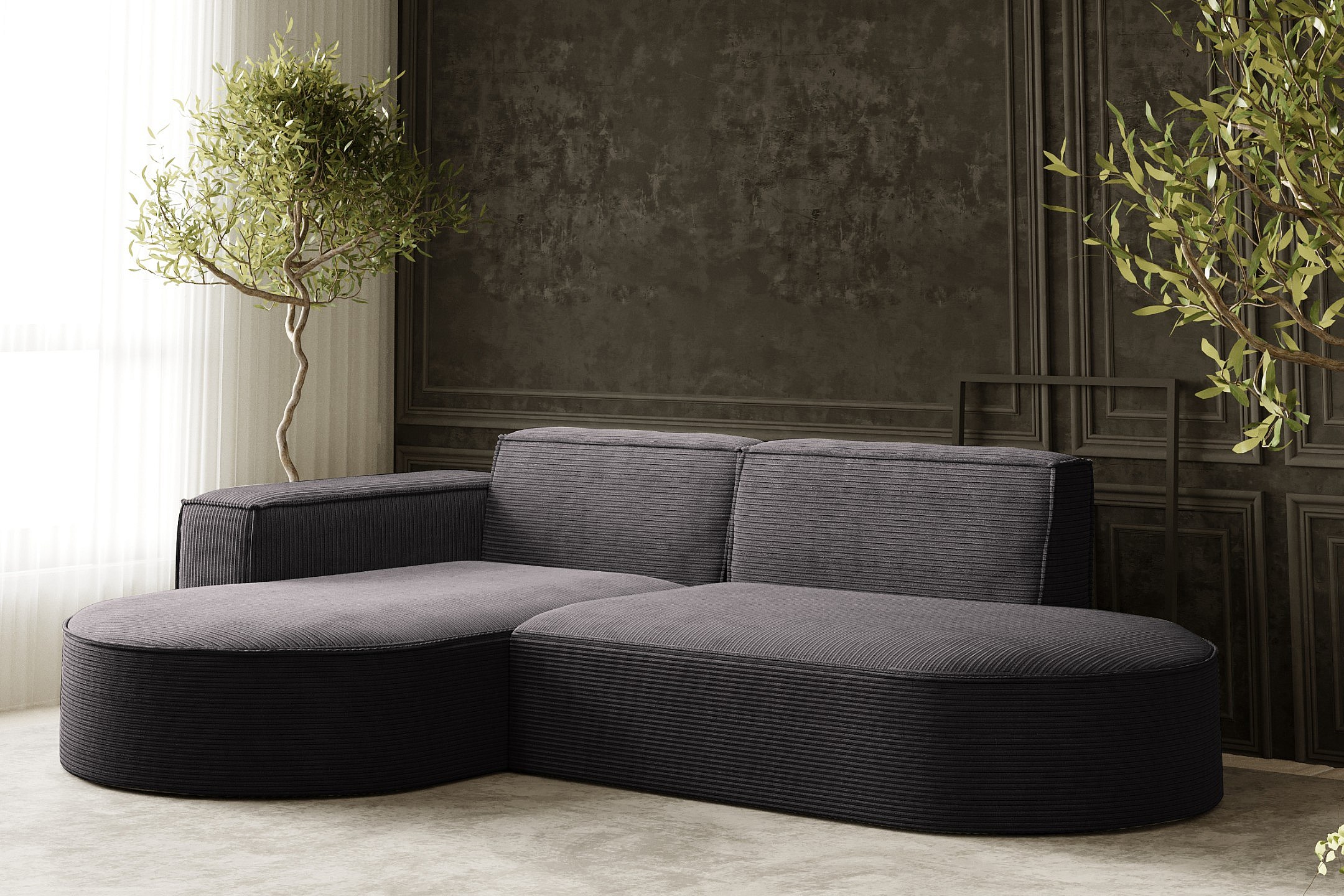 Canapé d'angle Designer MODENA STUDIO tissu Cordon épais Poso Gris Foncé Gauche