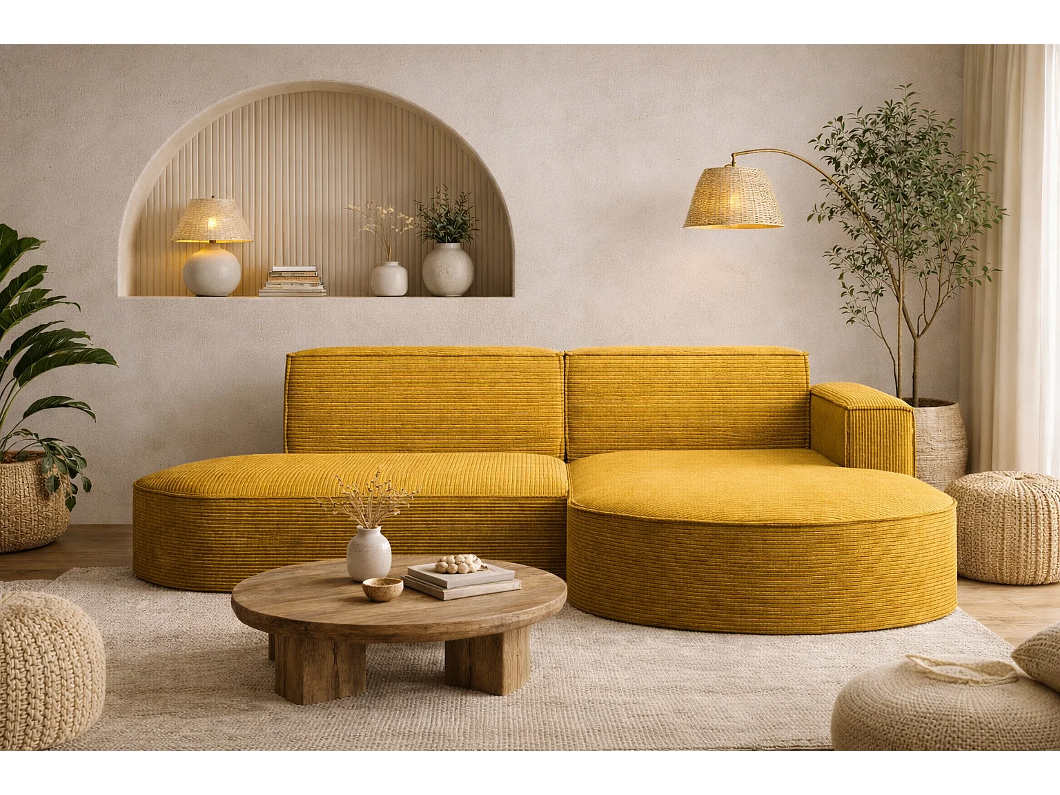 Canapé d'angle Designer MODENA STUDIO tissu Cordon épais Poso Jaune Droit