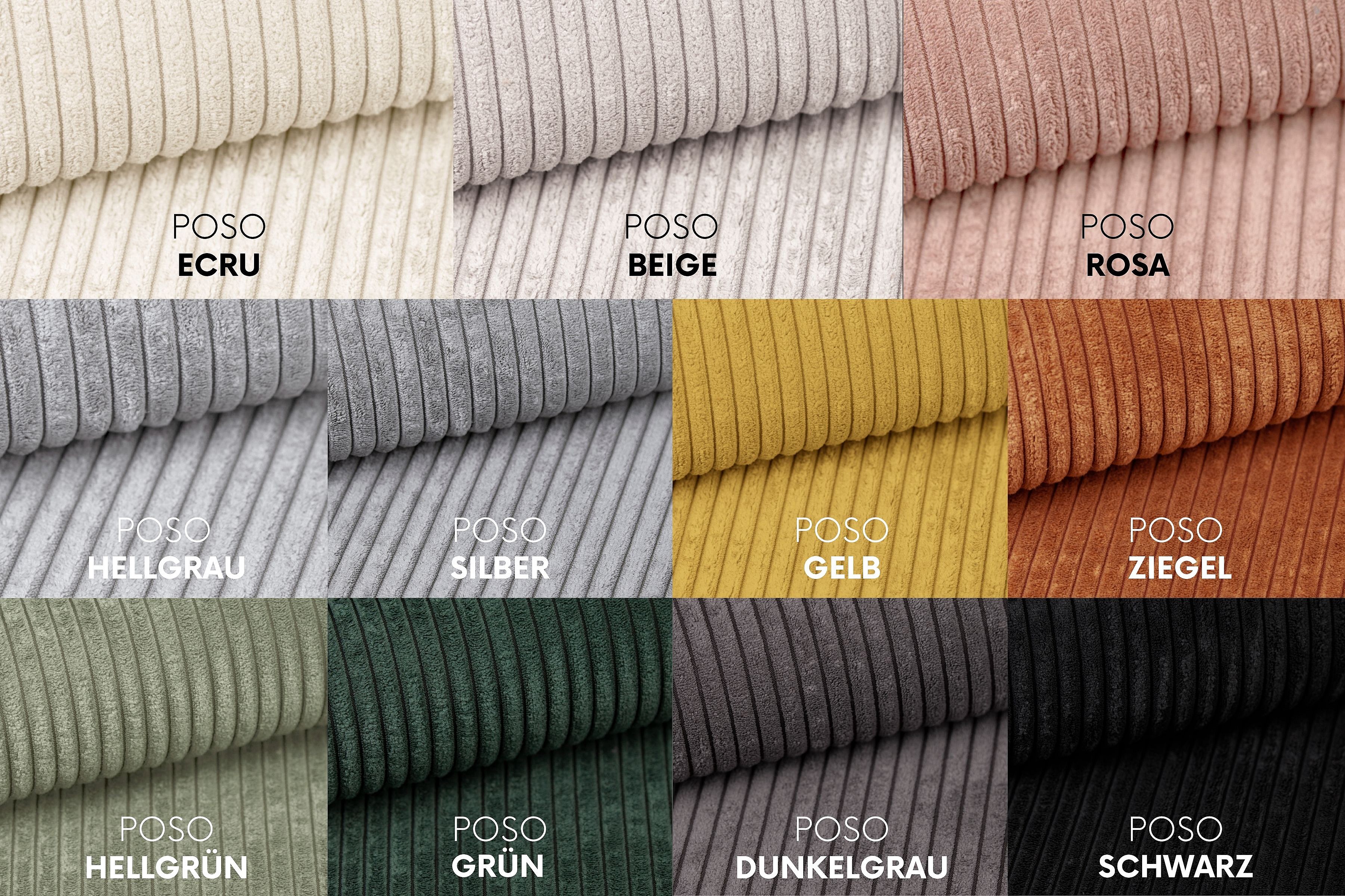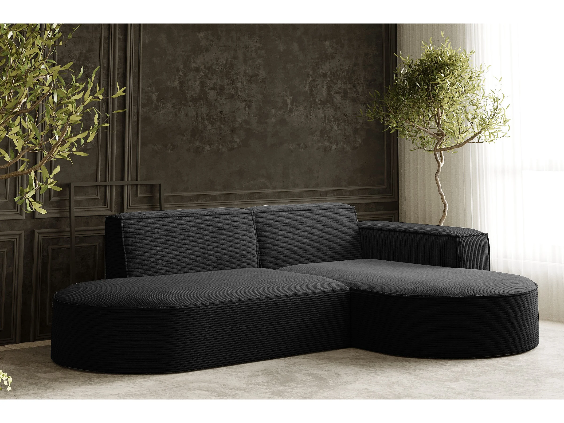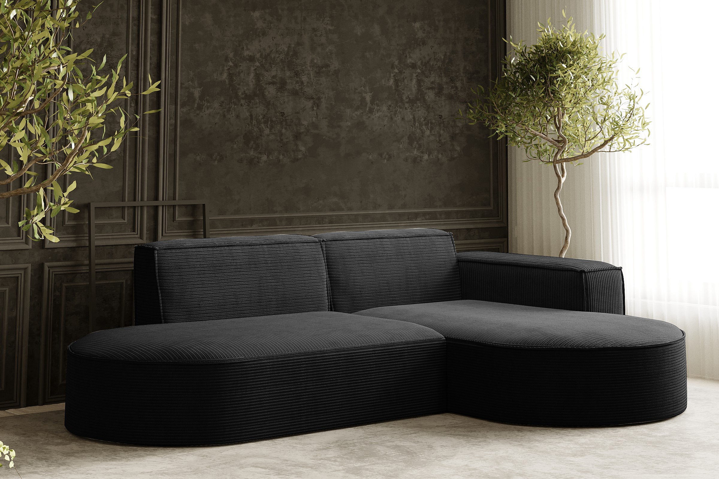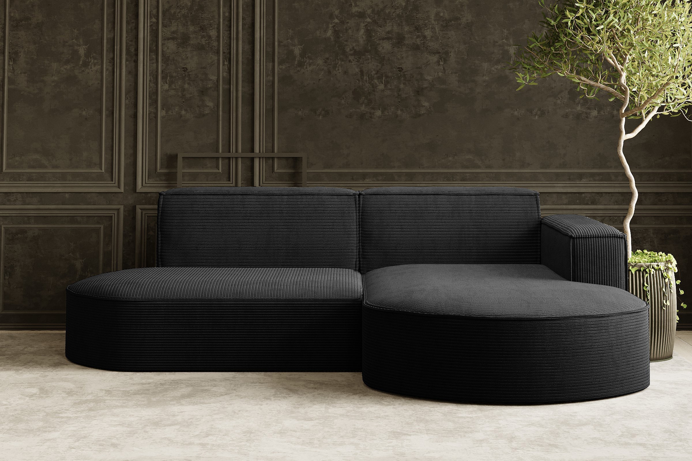 Canapé d'angle Designer MODENA STUDIO tissu Cordon épais Poso Noir Droit